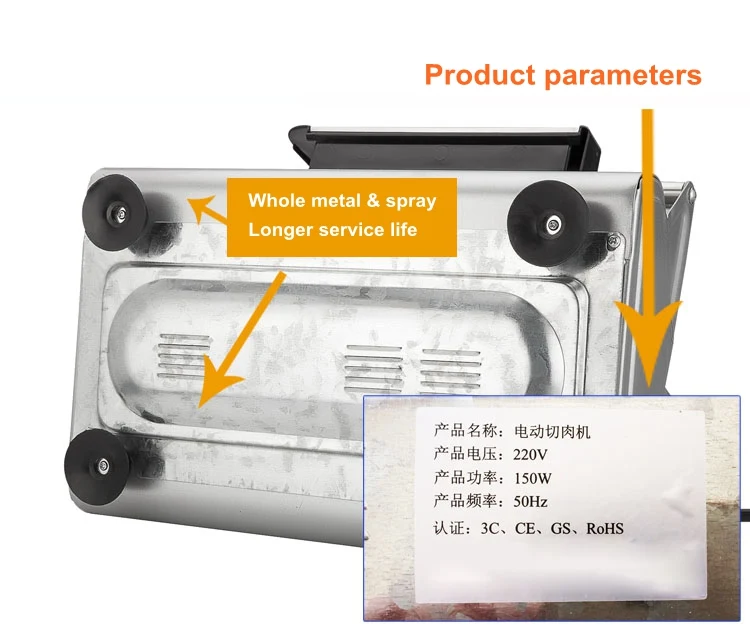 Application range: frozen meet, meet roll, fruit and vegetables(potato,onion,lemon,pineapple, apple and so on), toast,bread,Ham slices.