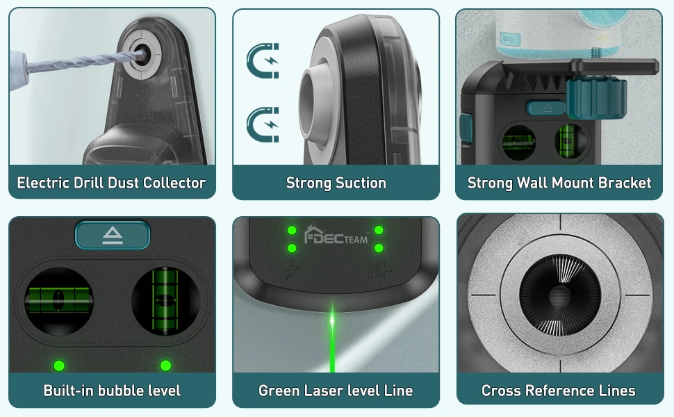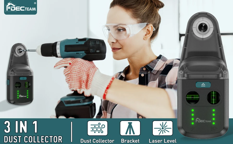 Decteam электрический сверлильный пылеуловитель 3 в 1 зеленый лазерный уровень бытовой сверлильный пылесборник настенный всасывающий ящик инструмент для очистки