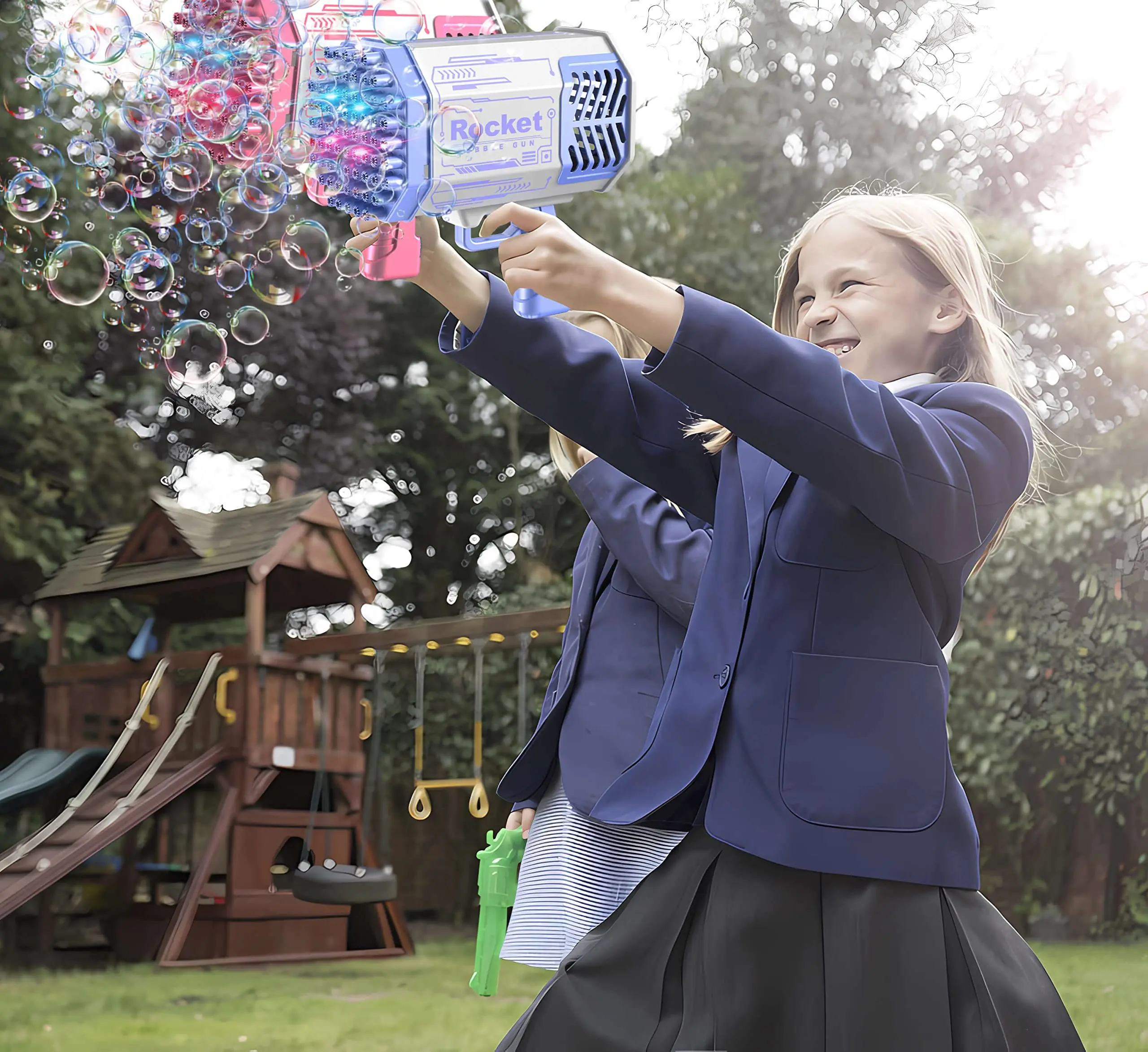 【Новая машина для производства пузырей с 69 отверстиями 】 Создатель пузырей с красочными световыми эффектами, полный мощности, сводит пузыри с ума, а Дети веселятся. Может дуть тысячи пузырей одновременно. Ракета пузырьковая машина является одной из самых популярных игрушек на TikTok, Instagram и YouTube в последнее время. Любили и взрослые, и дети, и их поклонники.