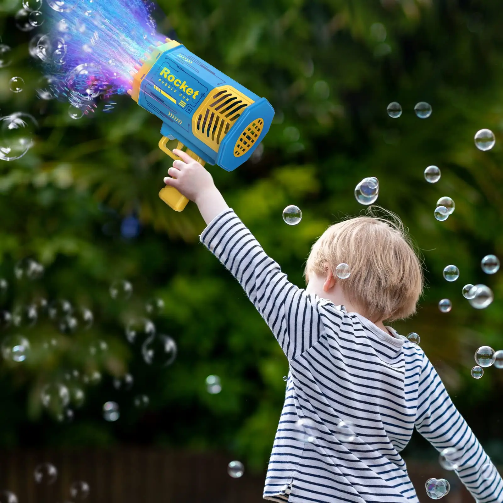 【Лучший подарок для ваших детей】 Благодаря безопасному и удобному дизайну это лучший подарок для ваших детей. Он может производить удивительные эффекты: может генерировать более 1000 цветных пузырьков в минуту, которые помогают создать чудесную атмосферу. Это подарок, который вы никогда не забудете.