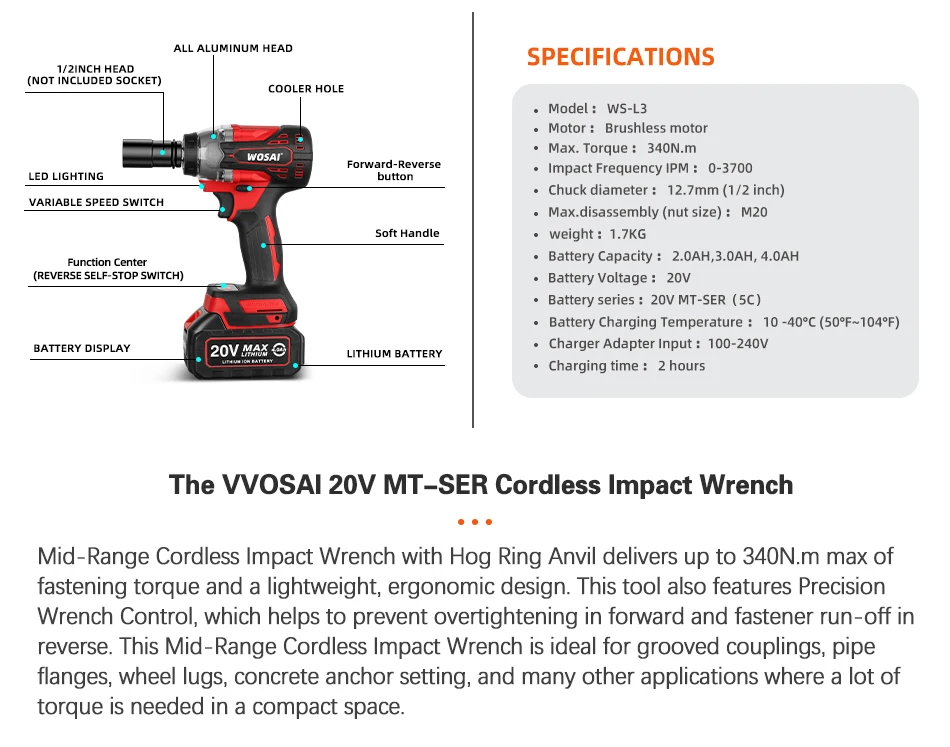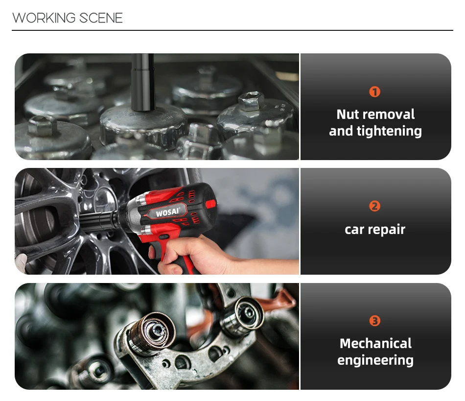 Электрический ударный гайковерт WOSAI MT-Series 340N.m, бесщеточный двигатель 20 в, литий-ионный аккумулятор, ручная дрель