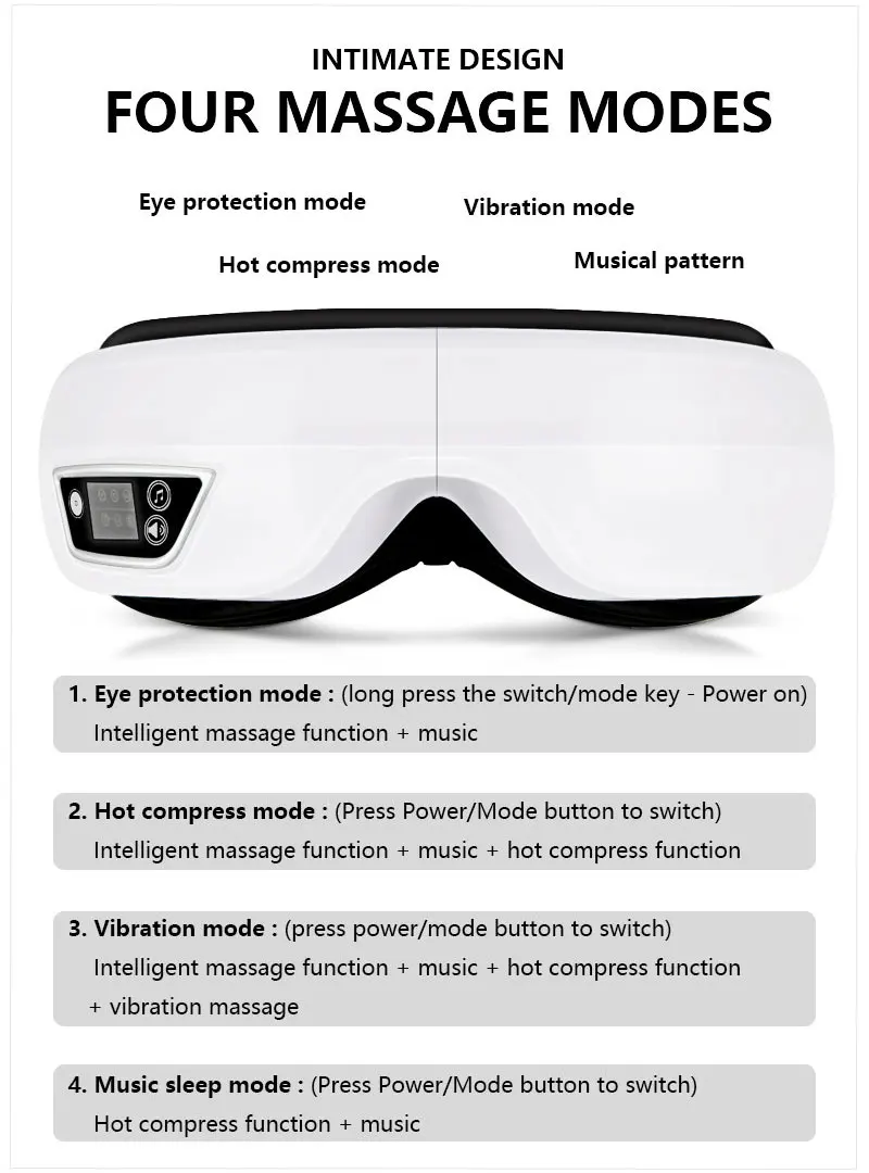 * Multi-frequency vibration massage. Increase multi-frequency micro-shock massage, effectively provide massage effect and quickly relax eye muscles.