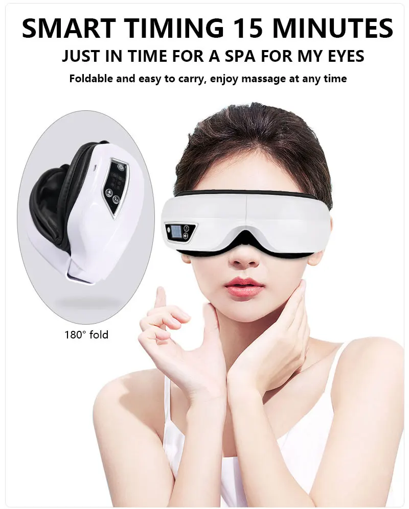 Principle of action: There are many acupuncture points around the eyes of the person recorded in the medical book. When the eyes are frequently rubbed/ blinking/ sightedness/ sightedness is dizzy, the eye is too tired, and the skin can be massaged around the eyes and the temples properly. Achieve the effect of dredging and relax your eyes. The eye massager is to simulate the "push-squeeze-pinch-push" massage around the eyes and the temples, and add the hot compress of the eyes to relax the eyes and cooperate with the music to get rid of the fatigue of the day.