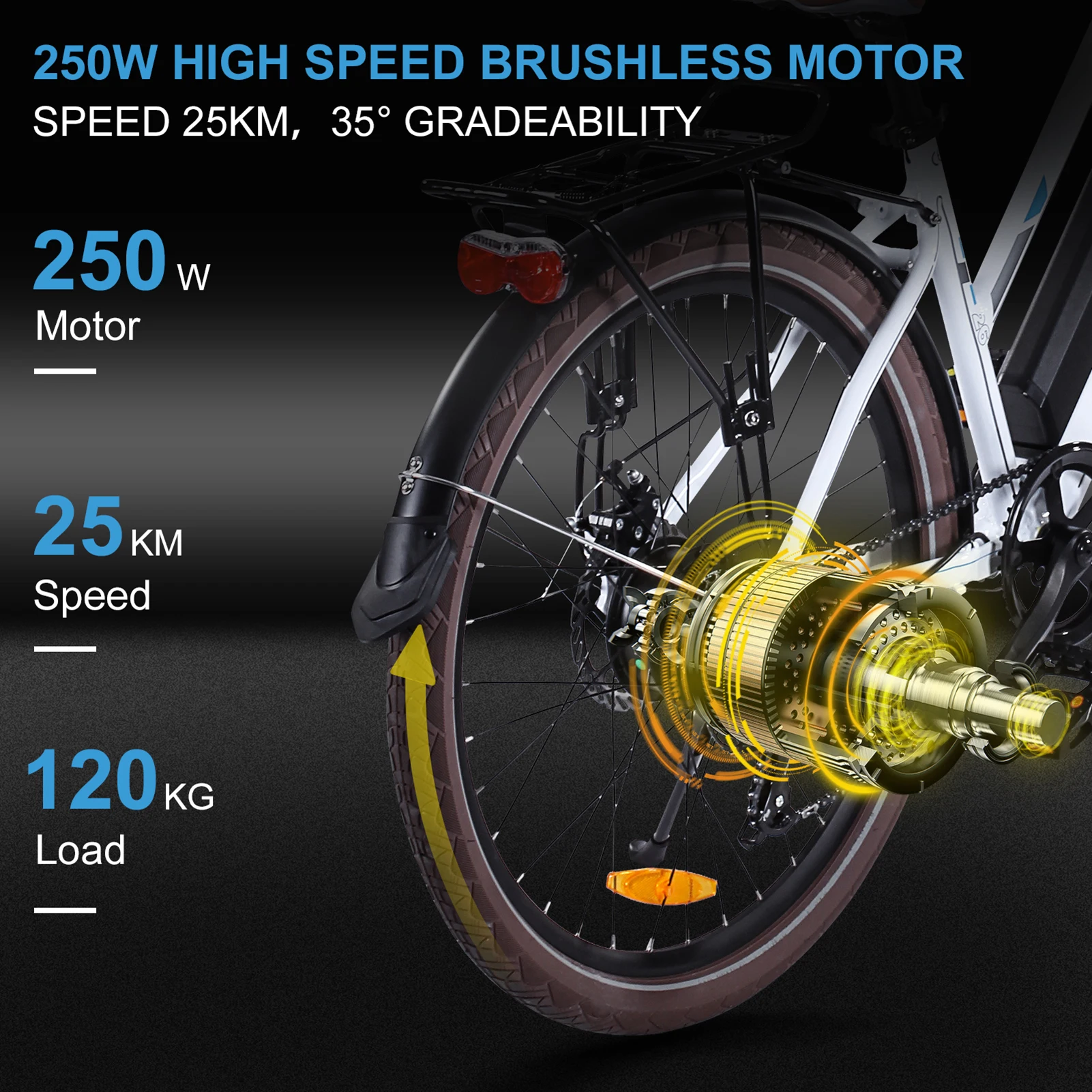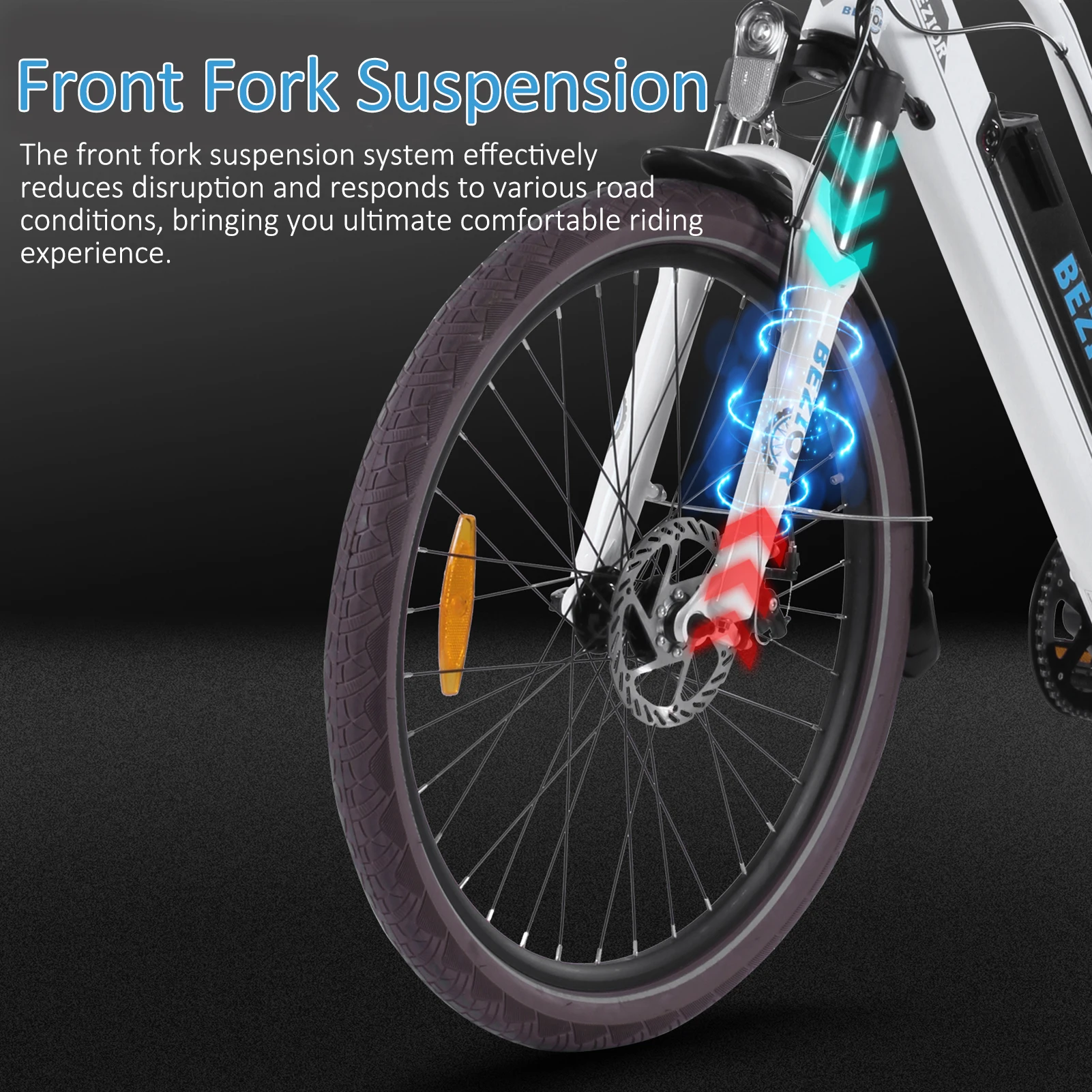 Этот 26-дюймовый Электрический велосипед оснащен двигателем мощностью 250 Вт и литиевой батареей 12,5 Ач, что обеспечивает максимальную скорость 25 км/ч, возможность отклонения на 35 ° и дальность плавания 80 км. Он изготовлен из высокопрочного алюминиевого сплава, чтобы выдерживать вес пользователя до 120 кг. Передняя система подвески и противоскользящие колеса обеспечивают плавную, комфортную езду по ухабистой дороге. Это идеальный автомобиль для поездок на работу, покупок, поездок и многого другого.