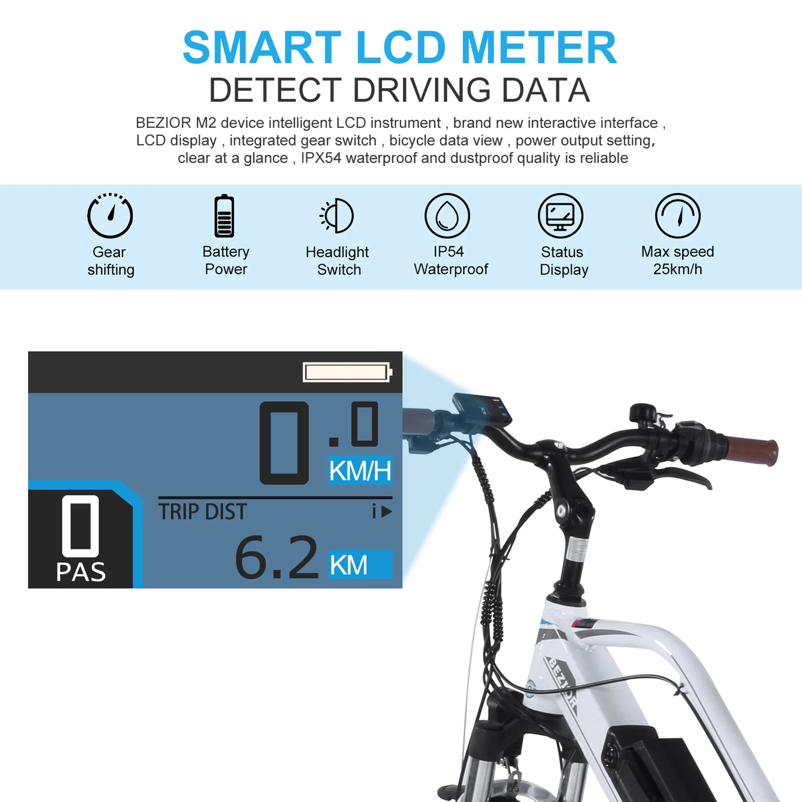 Электрический велосипед с ЖК-дисплеем, 250 Вт, диапазон 80 км