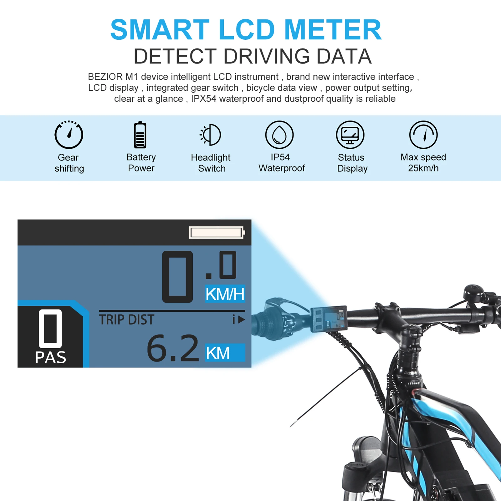 Интеллектуальный ЖК-счетчик обеспечивает быстрый просмотр данных о езде, таких как скорость и расстояние поездки.