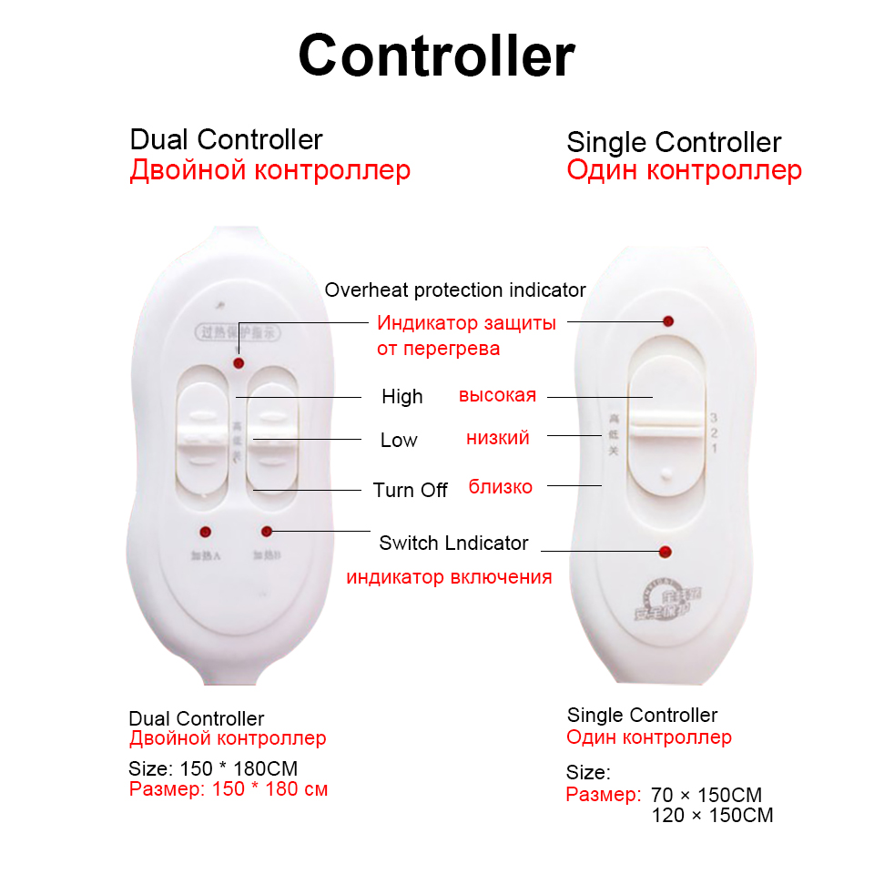 Электрическое одеяло, двойное, 220 В, с термостатом