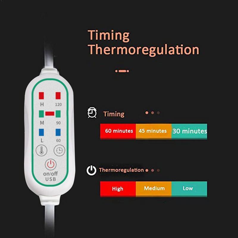 2. 【Трехступенчатая Регулировка часов】 трехступенчатая Регулируемая заготовка с подогревом от батареи, с таймером, функцией синхронизации и устанавливаемым временем 60, 90 и 120 минут.