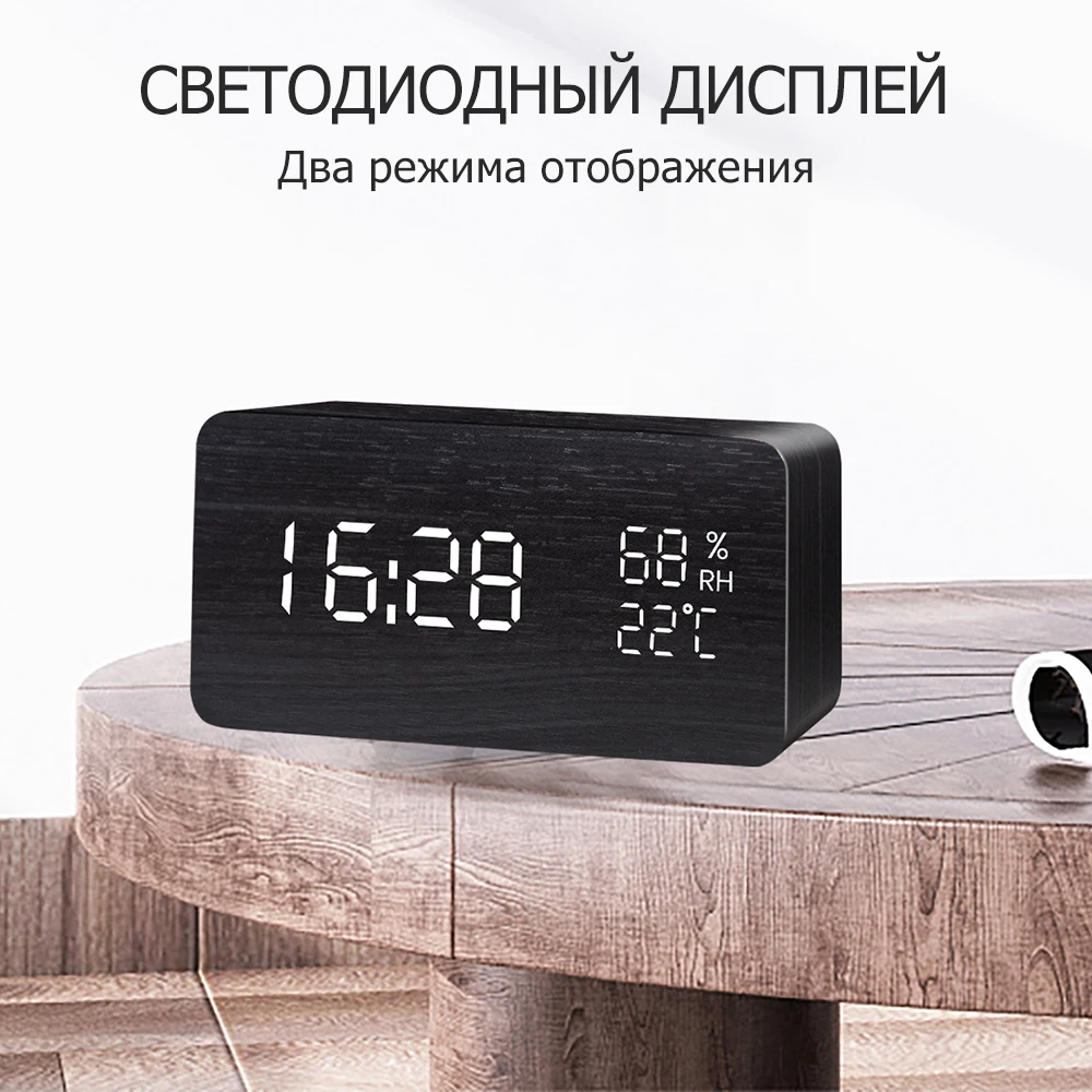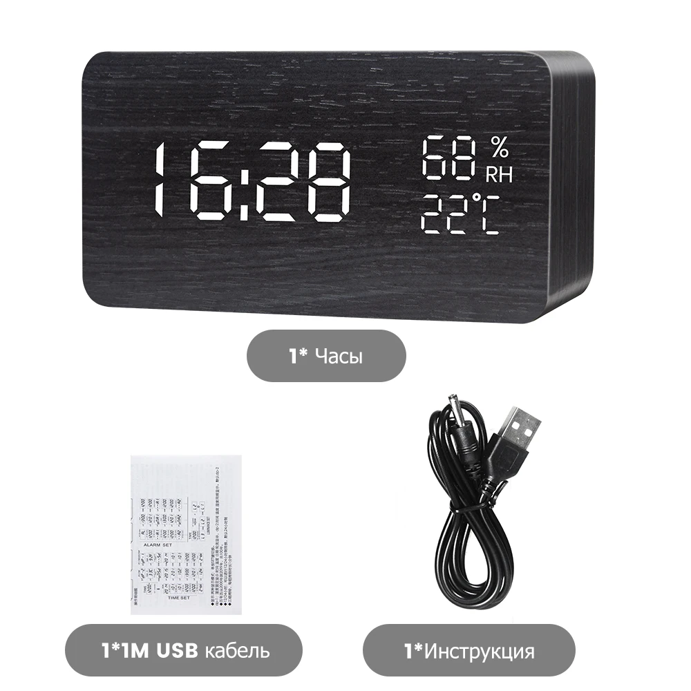 Электронные настольные часы, светодиодные цифровые наручные часы с функцией повтора, питание от USB/AAA, с голосовым управлением и регулировкой температуры и влажности