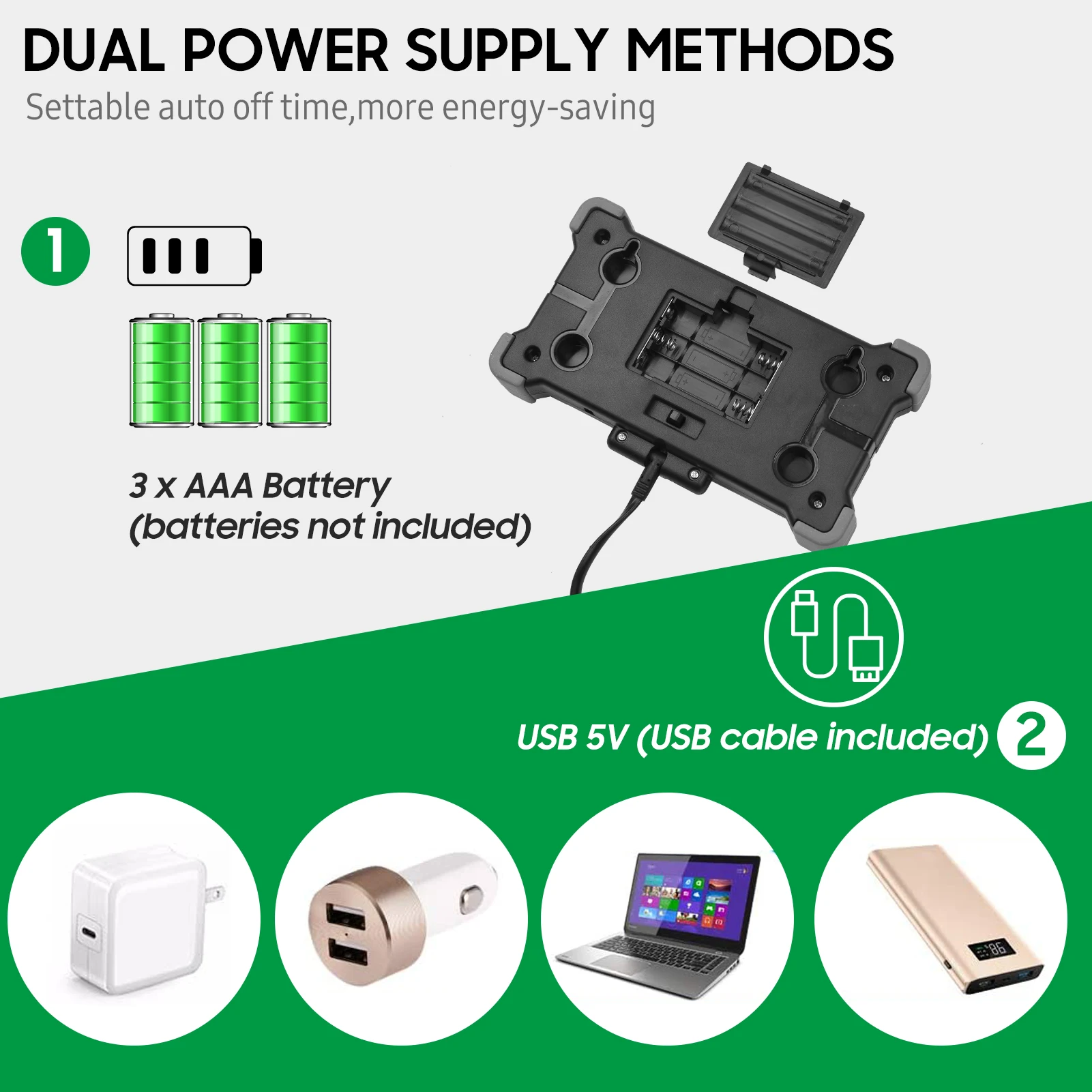 Методы двойного питания: USB 5 В или питание от батареи (батарейки в комплект не входят).