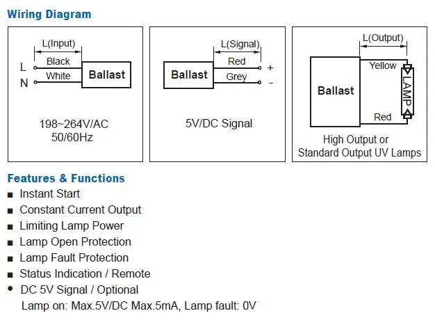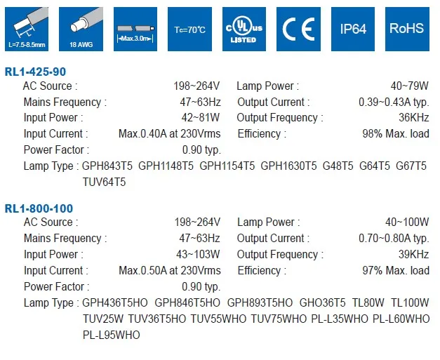 Baishi BEASUN RL1-425-90 75 Вт/79 Вт очищение от дыма, электронный балласт для очистки воды ◆Электронный балласт очень важен. Только когда ультрафиолетовая лампа сочетается с электронным балластом, вся Ультрафиолетовая система может играть лучший эффект стерилизации. ◆ На основе высококачественных электронных балластов для ультрафиолетовых ламп, он может максимизировать эффективность ультрафиолетовых ламп и помочь продлить срок службы лампы. Преимущества электронного балласта: ◆ Самый длительный срок службы-до десяти лет. ◆ Запуск предварительного нагрева помогает продлить срок службы лампы. ◆ Сильная мощность делает выход УФ-излучения более сильным. ◆ Функция автоматической регулировки интенсивности ультрафиолетового излучения может быть добавлена.