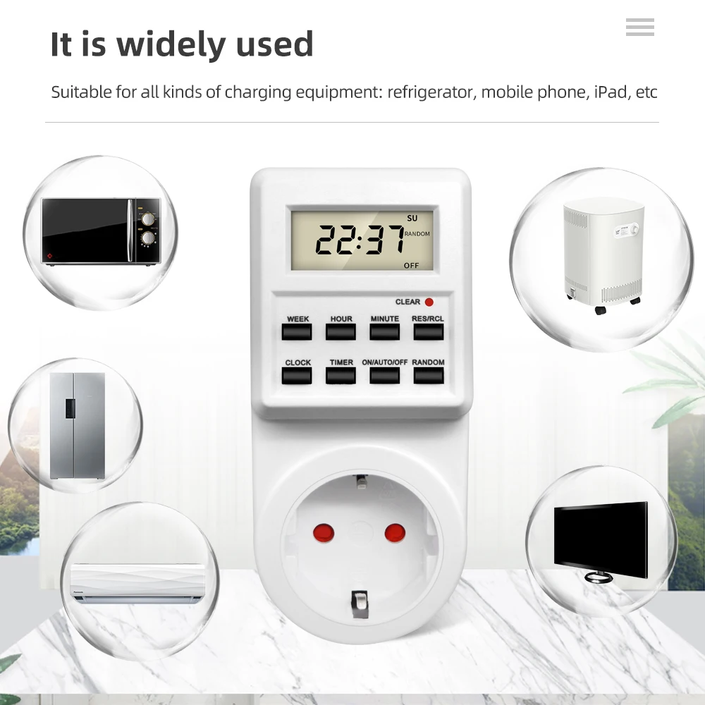 Электронный цифровой таймер EU FR BR Plug Кухонные таймеры 230 В 7 дней 12/24 часа Программируемое управление Таймер Розетка
