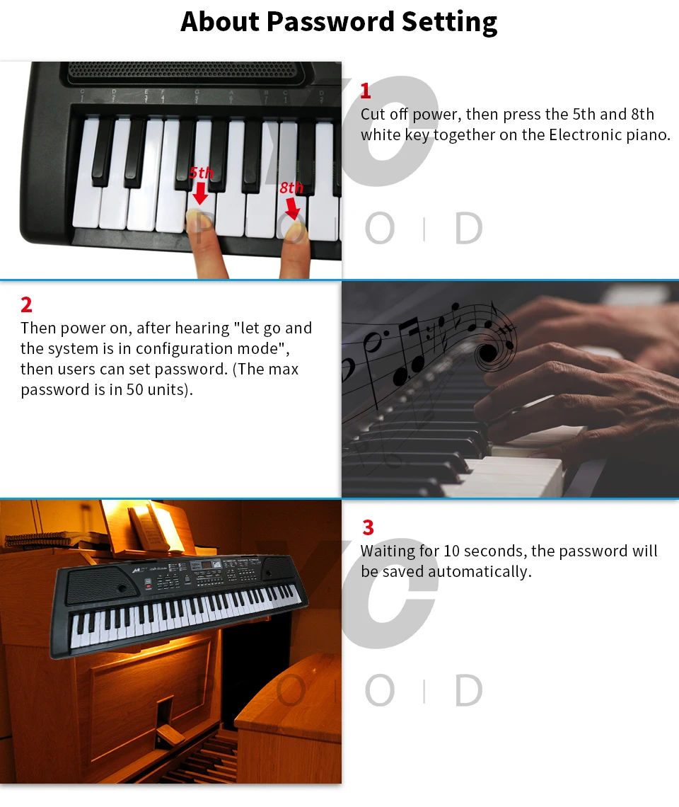 Игроки найдут электронное пианино в квест-комнате. Пользователь предварительно устанавливает пароль.