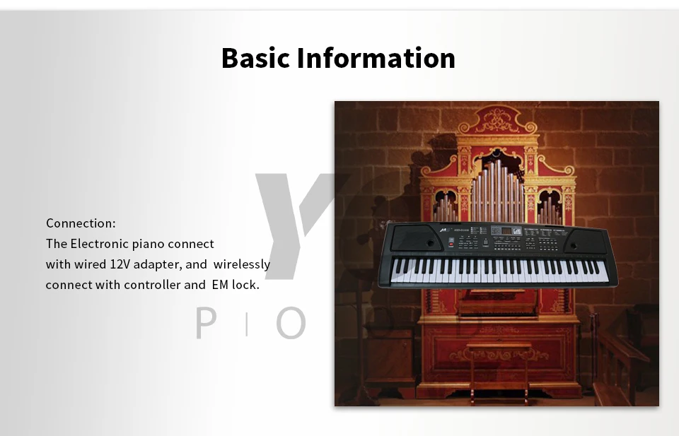 1. Подключение: электронное пианино подключается к проводному адаптеру 12 В и подключается по беспроводной сети к контроллеру и замку EM.