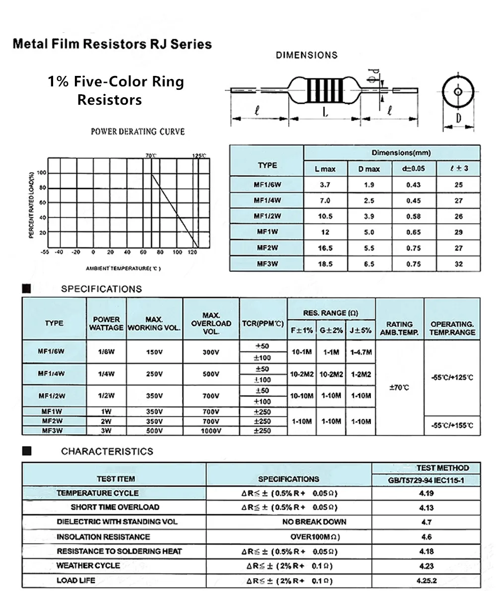 Название продукта: металлический пленочный резистор