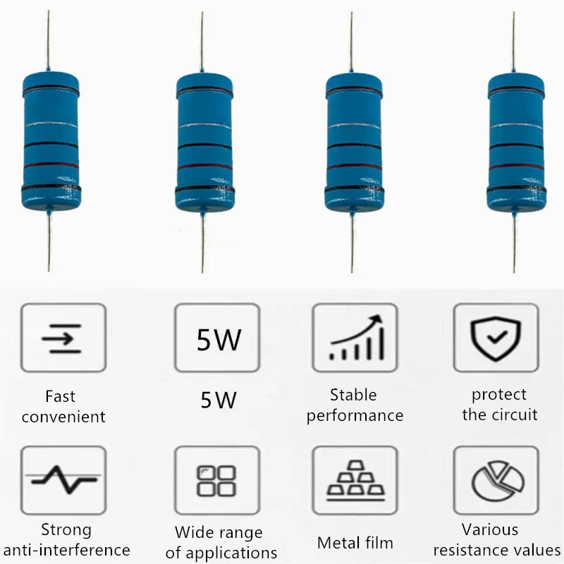 Электронный пленочный резистор 5 Вт 1%, сопротивление с пятицветным кольцом