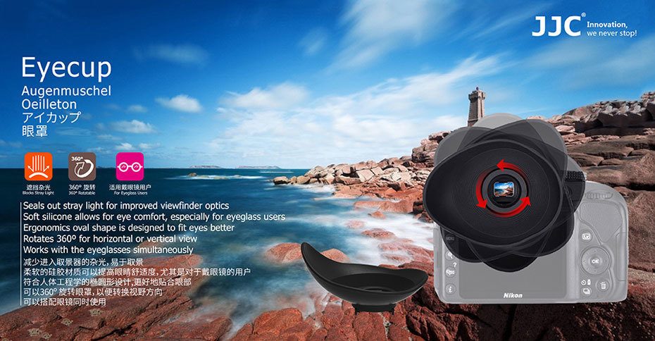 JJC ES-EP10 specially fits for SONY NEX-6, NEX-7, a6300 and a6000 digital cameras and FDA-EV1S electronic viewfinder. Made of silicone, its exterior is flexible and has strong abrasion-resistance. During shooting, this eyecup can not only keep your viewfinder safe from impact and scratches but also protect the viewfinder from dirt, moisture, dust, and unwanted light, thus providing more image detail. In addition, it allows more comfortable viewing when camera is held to eye, especially when wearing glasses. And it also protects your glasses from scratches.