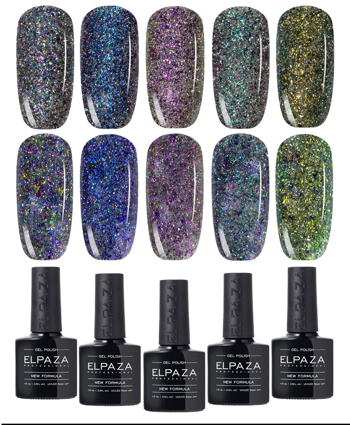 ELPAZA Светоотражающие гель-лаки с голографическим эффектом. Набор 5 в 1
