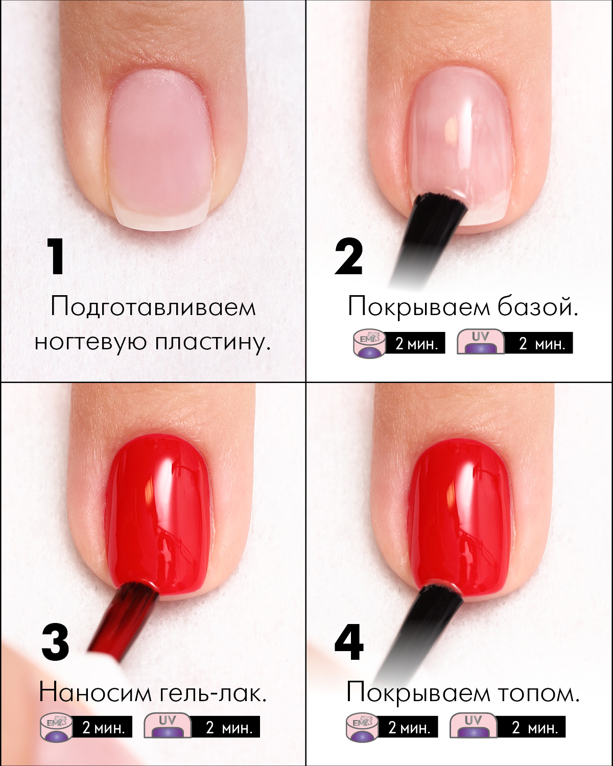 Гель лак для ногтей самовыравнивается в процессе нанесения, не собирается от кутикулы и боковых валиков. Рекомендуем использовать вместо с топом и базой для гель лака от EMI.