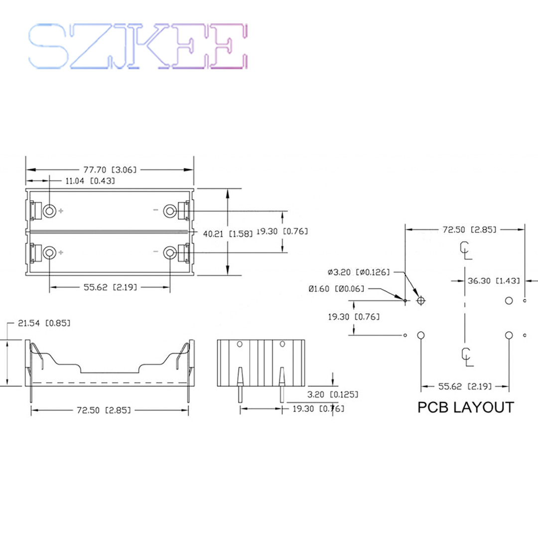 It can hold standard 18650 sized batteries, either for disposable or rechargeable batteries, the hard pins are great for easily soldering and connecting.