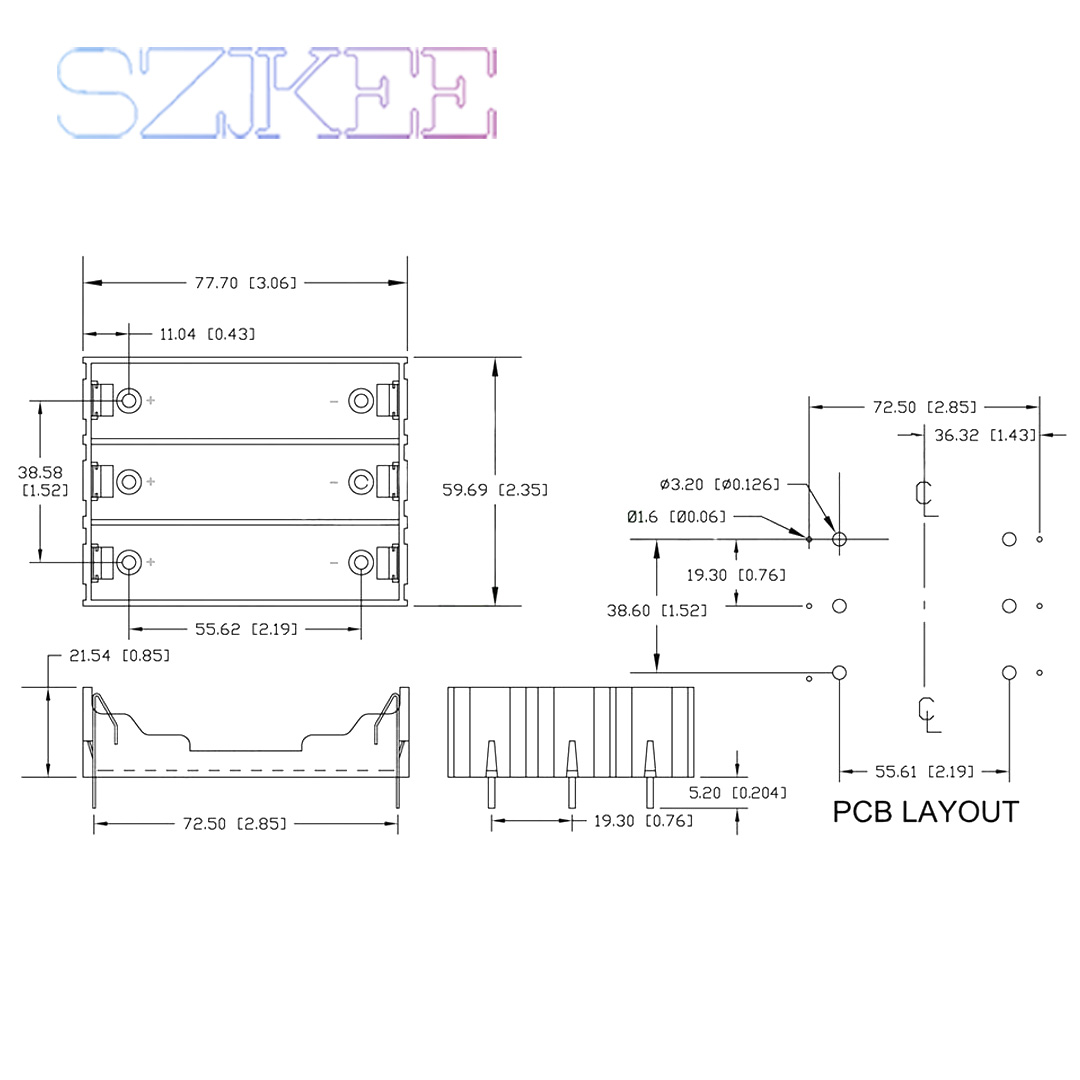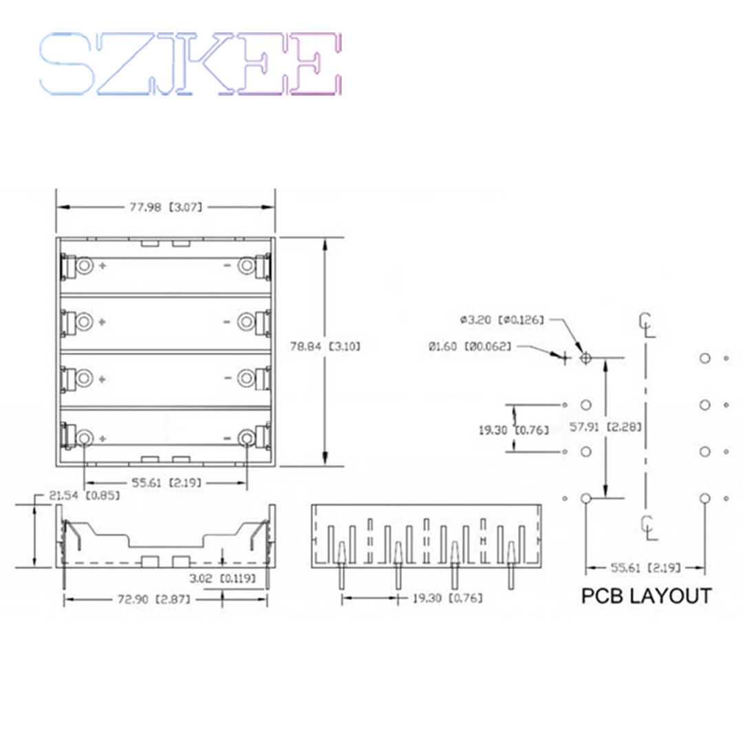 Can hold 1/2/3/4 pieces 3.7V*N battery pack from single cells.