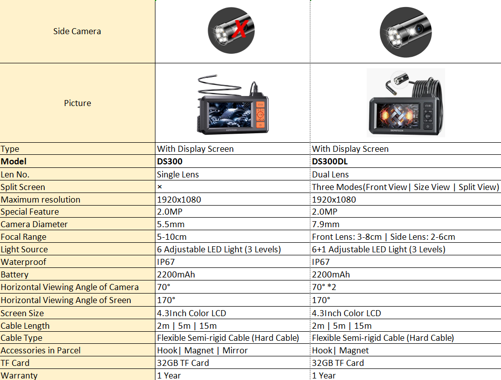 Эндоскоп DEPSTECH 1080P, 7,9 мм, двойной объектив | 5,5 мм, один объектив, экран 4,3 дюйма, Инспекционная камера, жесткий кабель IP67, эндоскопический для автомобиля