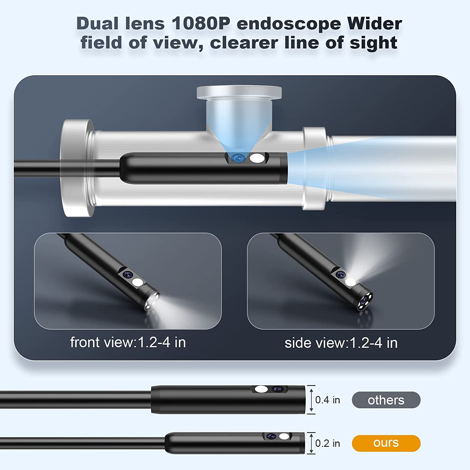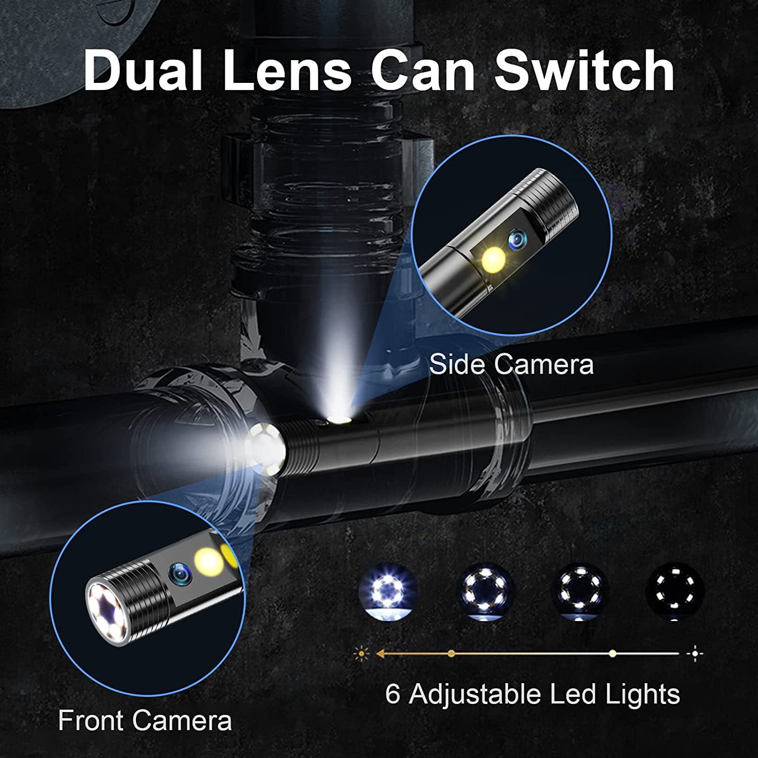 • [Водонепроницаемая канализационная камера с двумя объективами]2-Дюймовая конструкция с двумя объективами спереди и сбоку обеспечивает четкое поле зрения 1,2-4 дюйма и горизонтальное поле зрения 178 °. Водонепроницаемая конструкция 1080P поддерживает подводную работу, и вы можете более четко просматривать канализацию и трубы. Встроенный аккумулятор большой емкости, поддерживает 4 часа рабочего времени, полностью отвечает потребностям повседневной работы