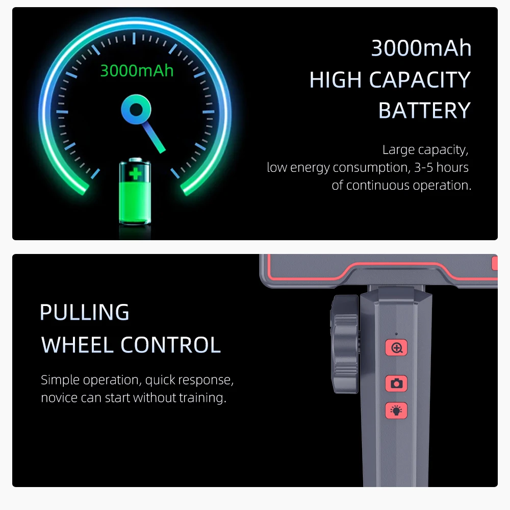 (1) Камера для осмотра бороскопа оснащена кабелем из полужесткого материала, выдерживает колебания и обеспечивает длительный срок службы. Камера эндоскопа может складываться в различные формы и может использоваться под водой для осмотра трубопроводов и других инспекционных ситуаций. Камера эндоскопа способна работать в нескольких средах.