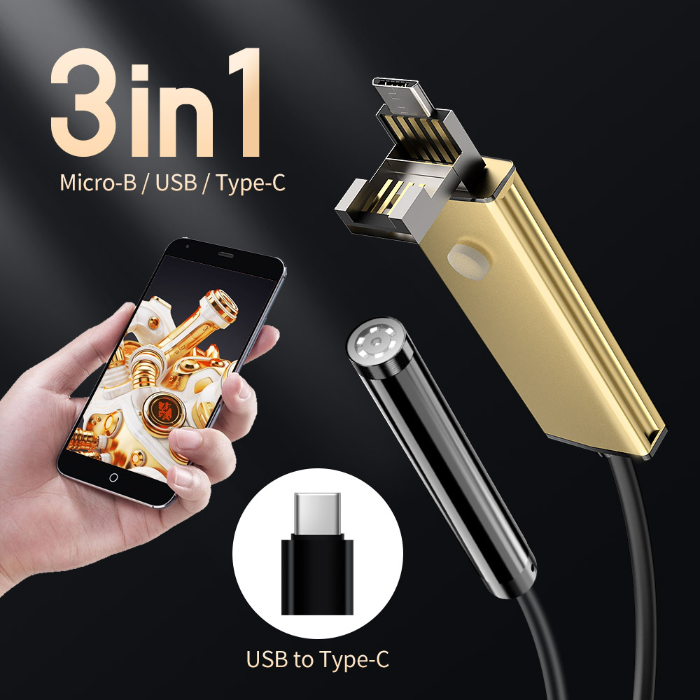5,5 мм, 7 мм, 8 мм, 3 в 1 эндоскопе Камера микро Тип USB-C USB инспекции Камера для телефонов на базе Android с Bluetooth PC 6 светодиодный регулируемый