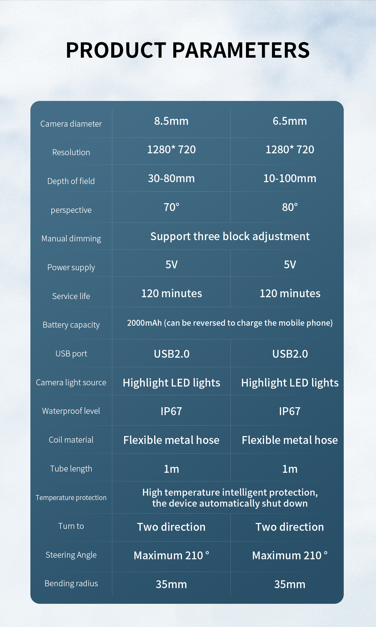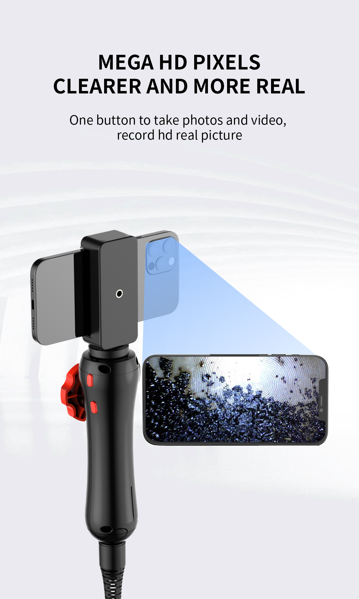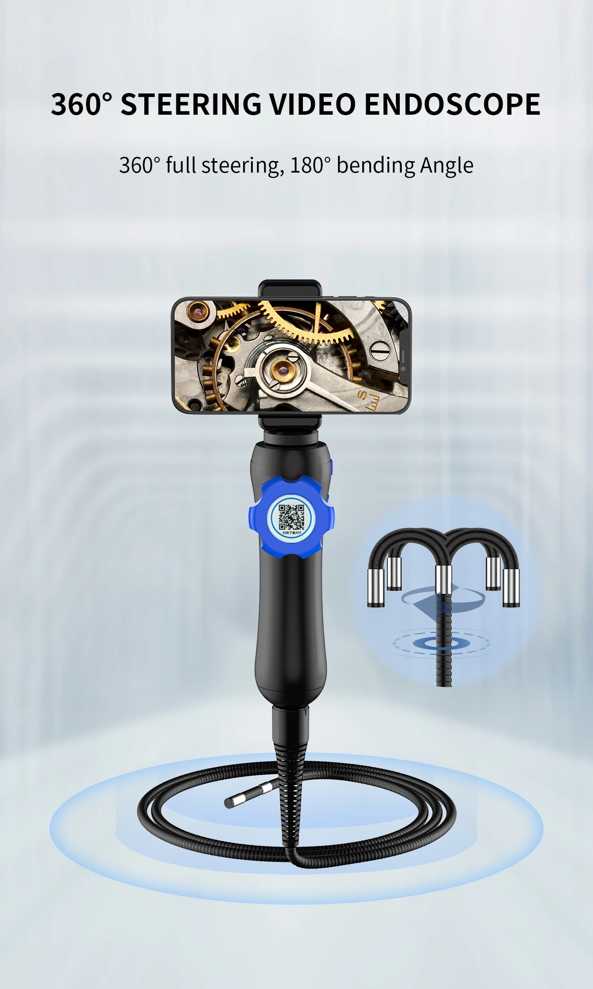 【ДВУСТОРОННИЙ СТАТИЧЕСКОЙ ЭНДОСКОПИ】-Двусторонний шарнирный зонд бороскопа на 360 ° обеспечивает круговое наблюдение на 360 ° для получения более подробной информации о проверке. Принятый 2,0-мегапиксельный CMOS-датчик, камера эндоскопа WIFI может снимать очень четкое видео в реальном времени, чтобы помочь вам найти проблему.