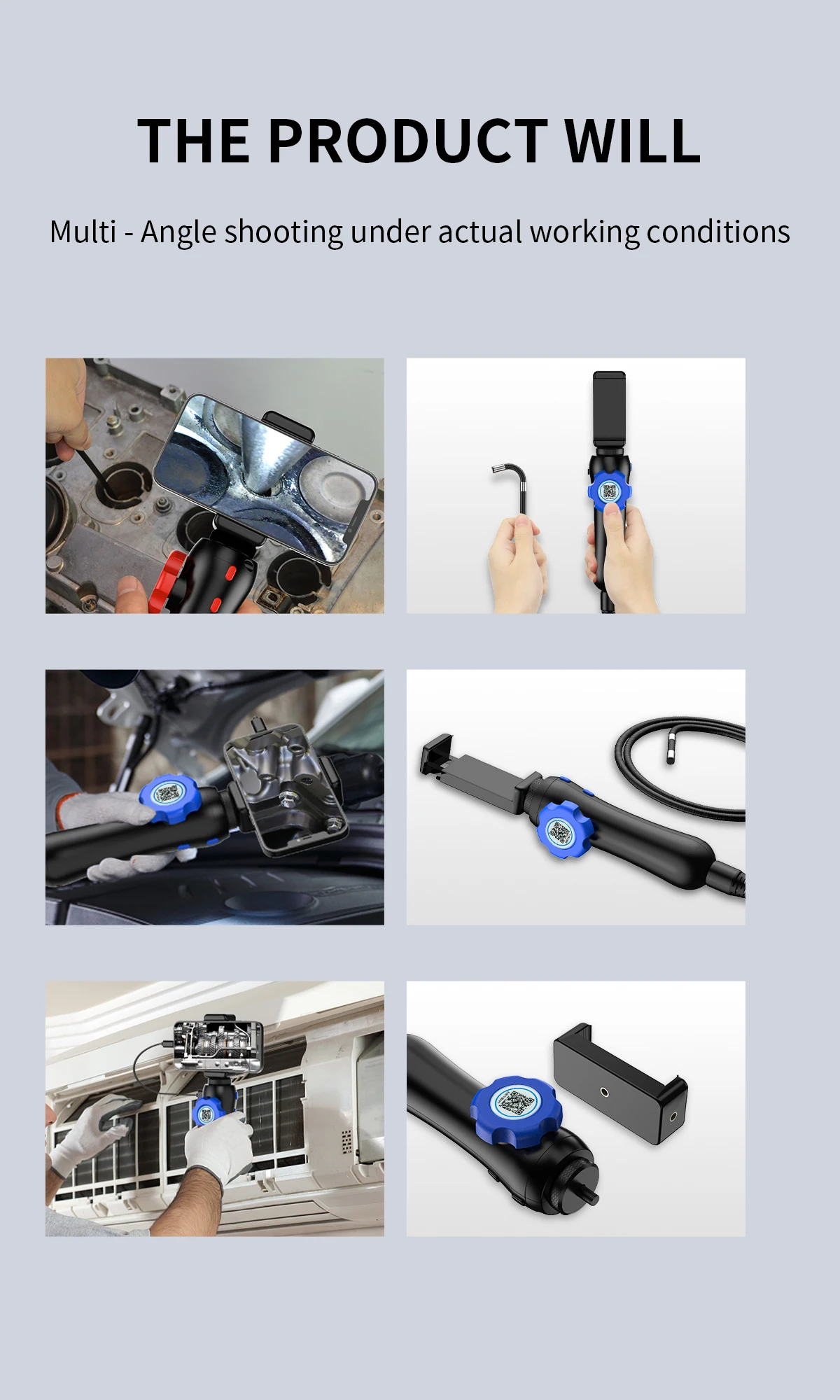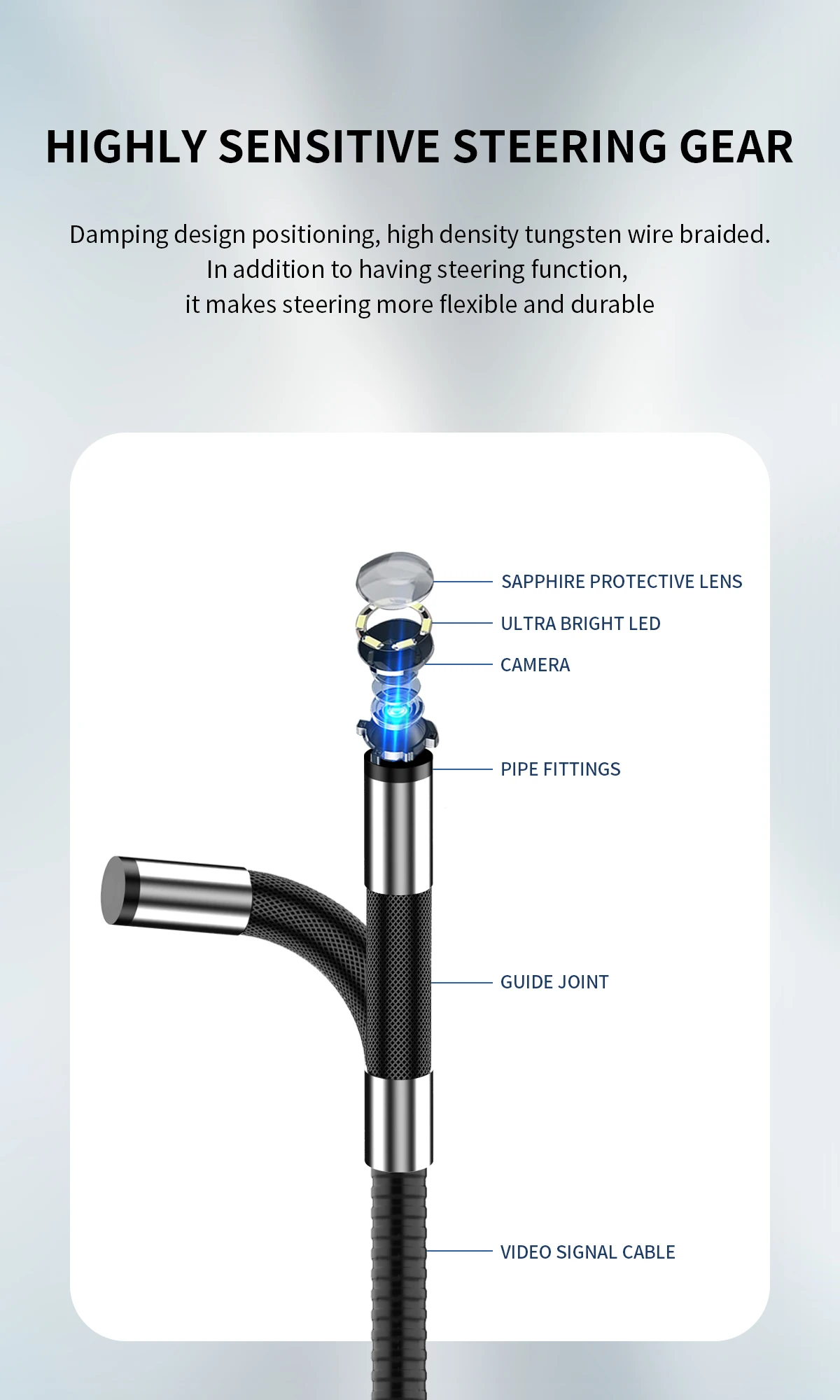 【Маленький зонд и 8 светодиодных лампы】-Артикуляционный бороскоп оснащен 6-миллиметровой инспекционной камерой, окруженной 6 светодиодными лампами, чтобы гарантировать возможность получения четкого изображения даже в темноте, обеспечивая легкий доступ через труднодоступные места, такие как механический осмотр, ремонт автомобилей или грузовиков, ремонт сантехники, электроустановка, дом DIY, потолок, Модернизация стен, чистка кондиционеров, ремонт и многое другое.