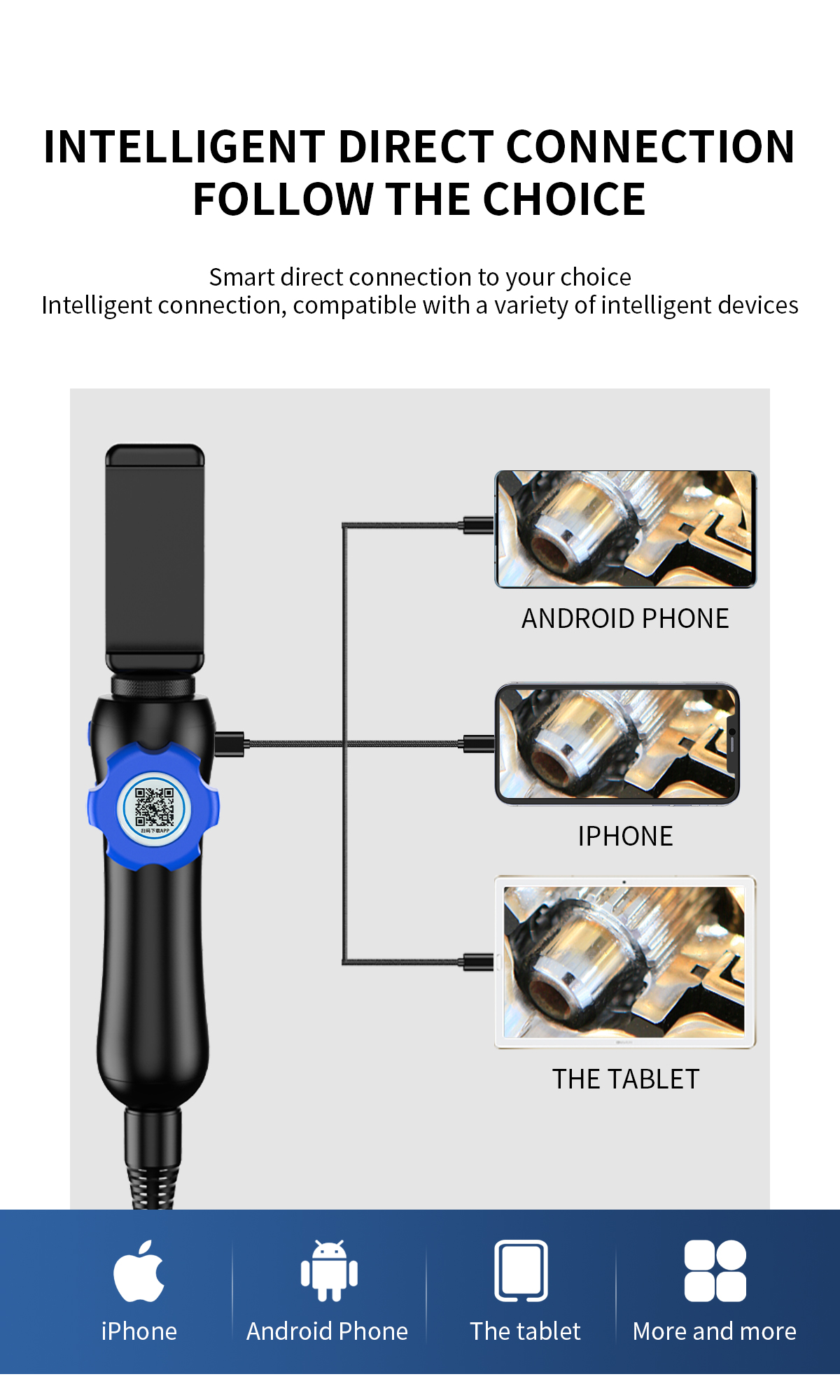 【СОВМЕСТИМОСТЬ с iPhone и ANDROID】: Эти Эндоскопы совместимы со всеми мобильными электронными устройствами iOS и Android. Просто загрузите приложение и подключите его к своему смартфону, чтобы начать осмотр.