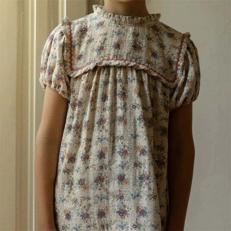EnkeliBB брендовая блузка с цветочным узором для маленьких девочек, дизайнерская одежда для девочек, милая стильная модная детская одежда с цветочным узором