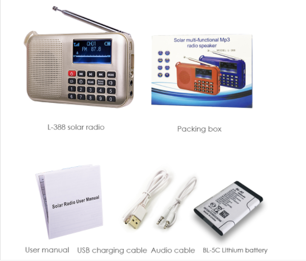 EONKO L-388 Solar FM Radio с TF USB AUX ЖК-дисплеем Power Bank