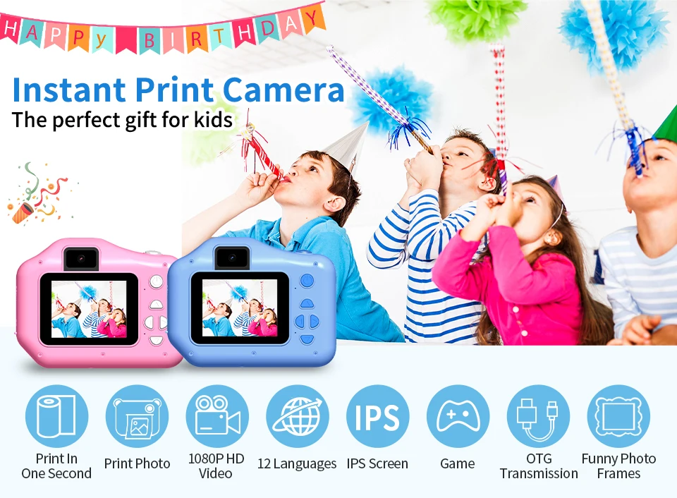 Erchang детская камера Мгновенной Печати 1080P селфи видео фотокамера для детей девочек мальчиков подарок на день рождения