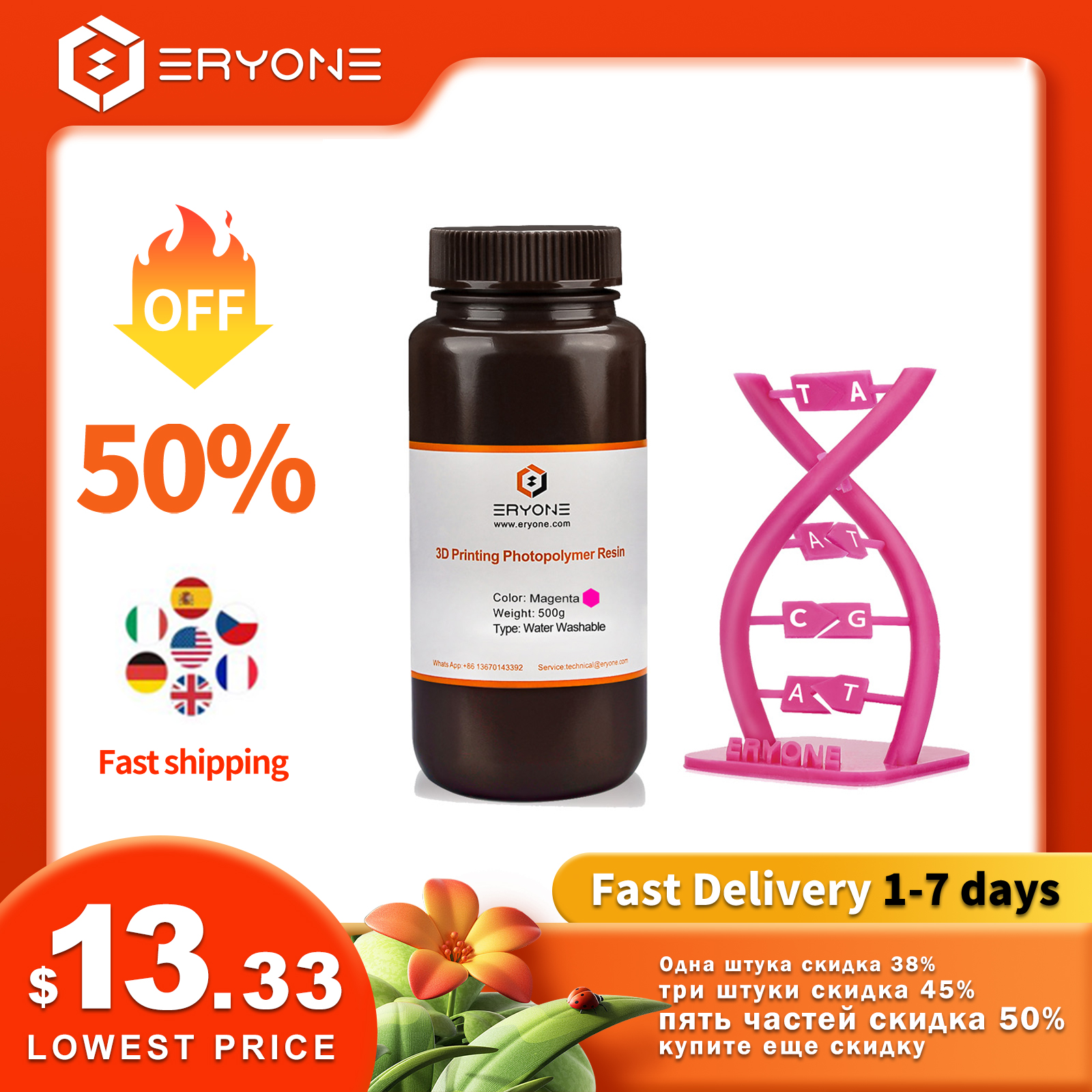 Eryone Promotion Водомоющаяся Смола 500 г для ЖК-3D-принтера Высокое качество УФ-отверждаемая Фотополимерная Смола Быстрая Бесплатная доставка