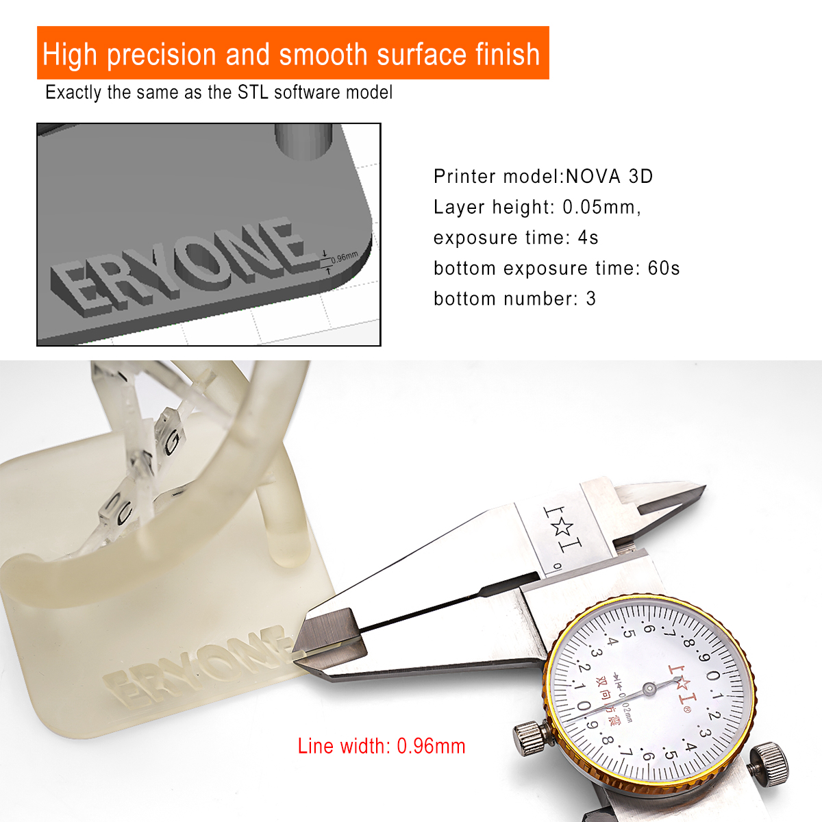 2. Хорошая текучесть, быстрое отверждение: Время печати значительно сокращается за счет хорошей текучести, отсутствия деформации в процессе формования, отделка результатов печати очень гладкая, и вы можете заметить, что детали очень точные.