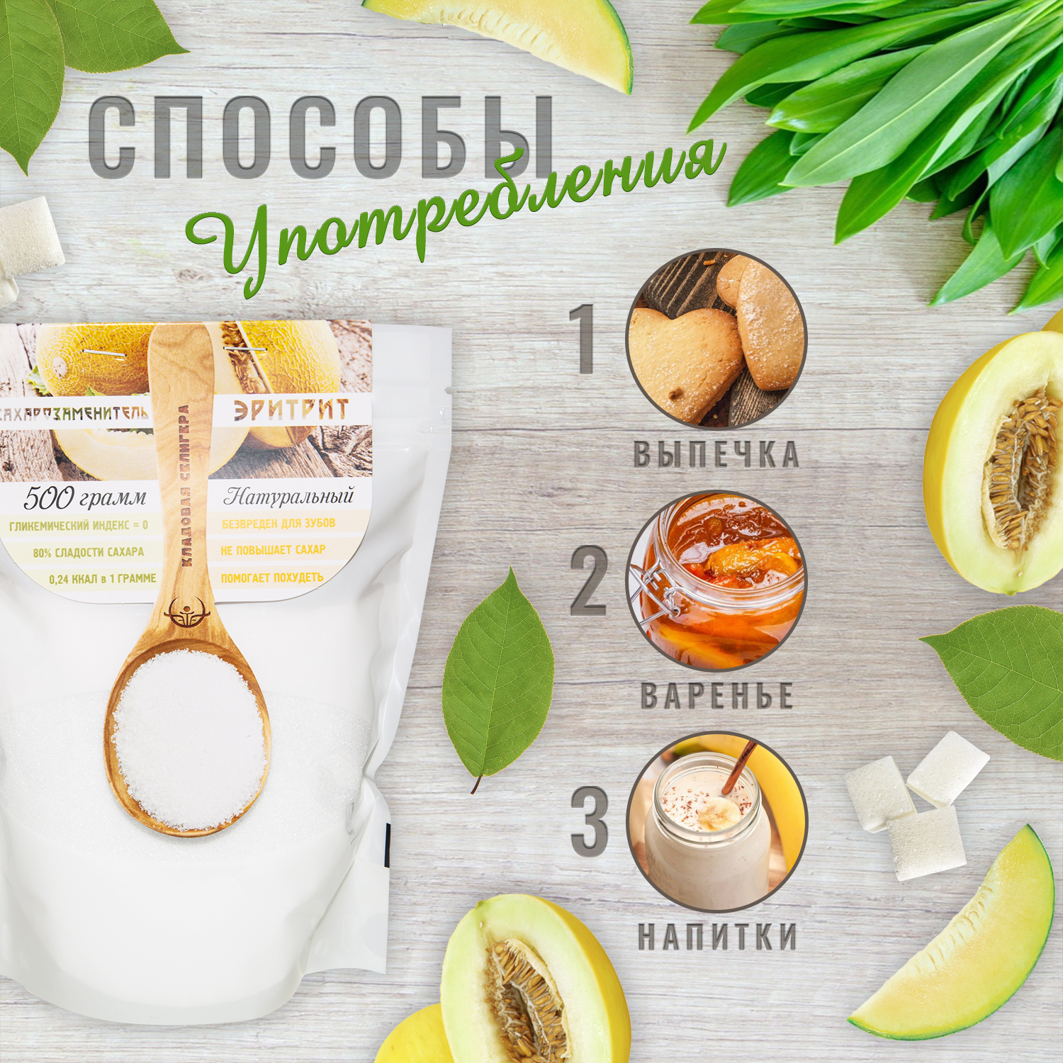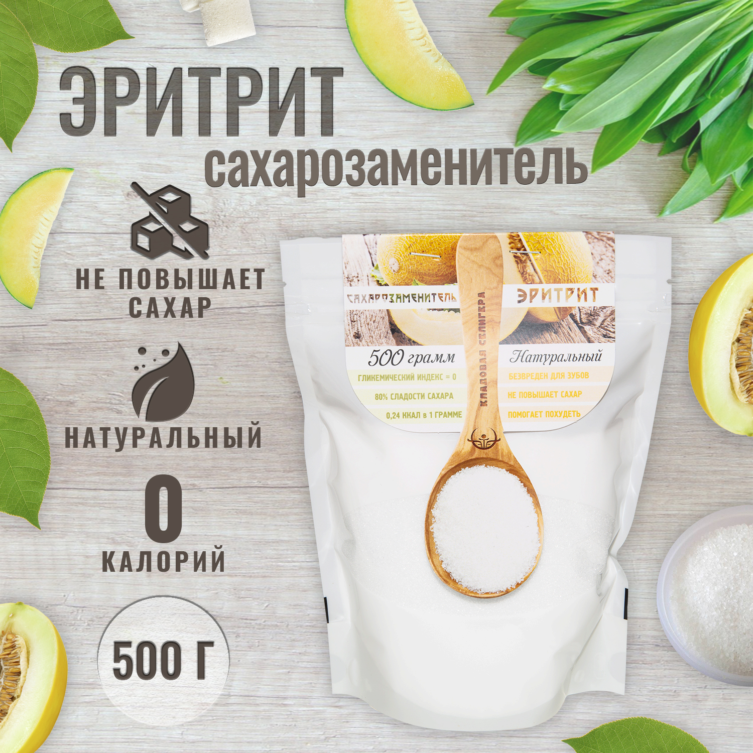 Эритрит 100% дынный сахар, БЕЗ КАЛОРИЙ, диабетический натуральный сахарозаменитель Эритритол, мелкий помол, 500 грамм