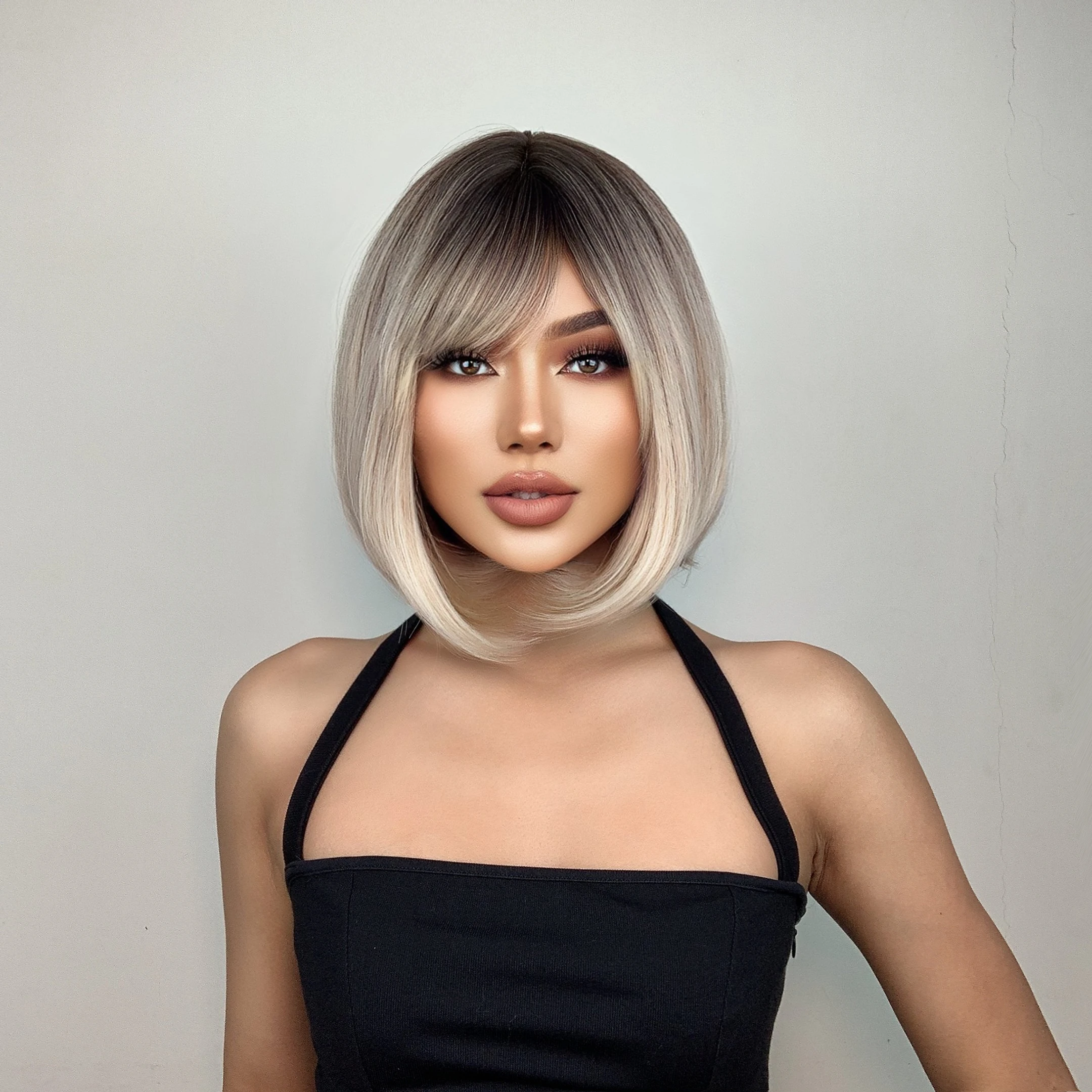 ESIN синтетические Средние Длинные прямые волосы с верхней черной Омбре для белого блонд боб парики для женщин термостойкие натуральные
