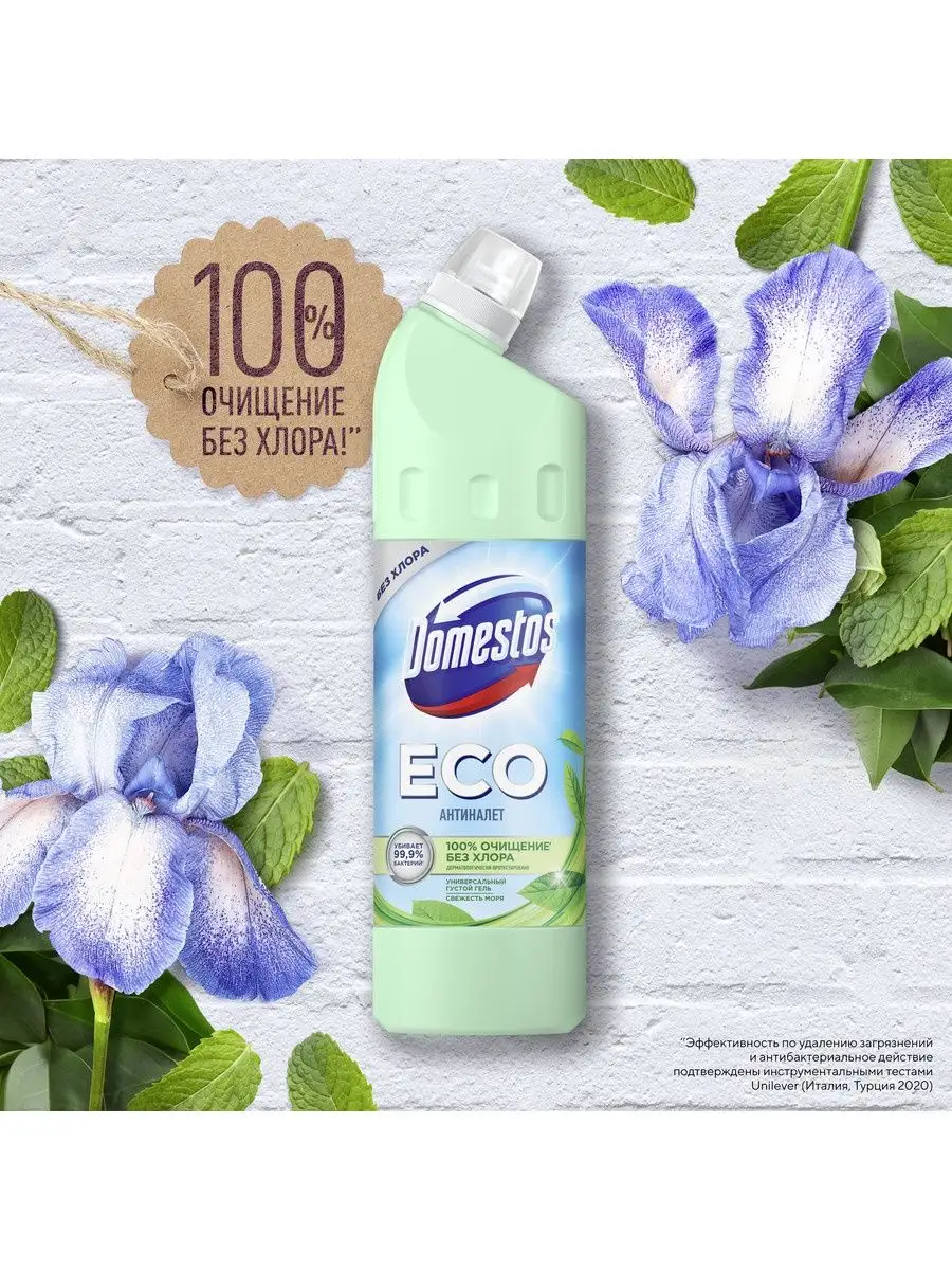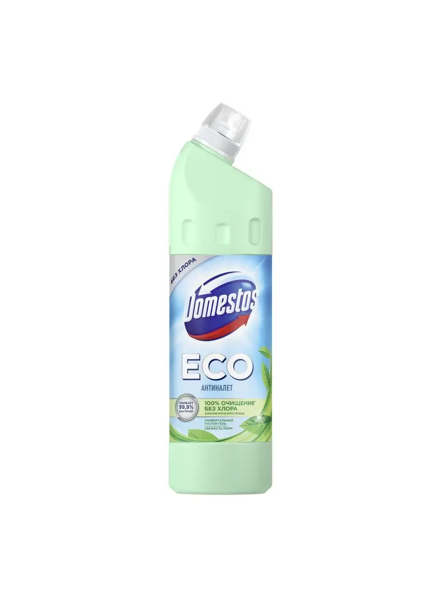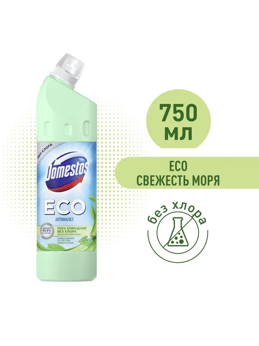 Описание: Выбирайте экологичное, эффективное и безопасное очищение - эко средство для сантехники Domestos ECO Антиналет Свежесть Моря без хлора. Это эффективные эко гели с приятным ароматом. Эко чистящие средства для уборки дома с формулой на основе лимонной кислоты удаляют сложные минеральные загрязнения, ржавые потеки и мочевой камень. Domestos ECO содержит антимикробный компонент природного происхождения, убивающий до 99,9% бактерий. Густая формула геля обеспечивает экономичный расход, не содержит ПАВы искусственного происхождения, хлор, фосфаты и парабены.Используйте эко гели для чистки унитаза и сантехники Антиналет Свежесть Моря для уборки дома: для ванной, устранения налета и подтеков на унитазе, мытья пола, кафеля и рабочих поверхностей. Доместос эко Антиналет без хлора содержит биоразлагаемые активные природные компоненты, а его упаковка полностью пригодна к переработке. Универсальное эко средство дерматологически протестировано и допускает уборку с использованием геля без перчаток.