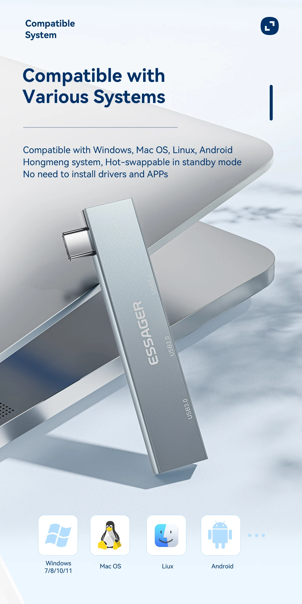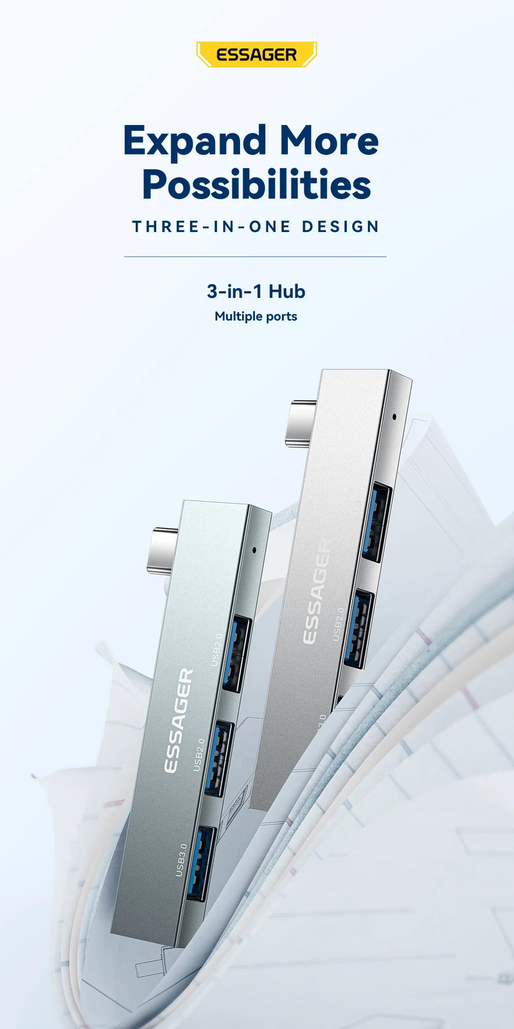Essager 3 в 1, Type C, с интерфейсом USB Type-C