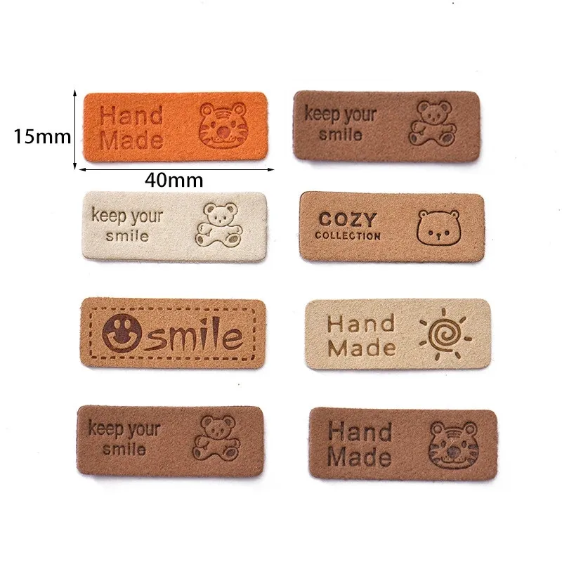 Этикетки для одежды ручной работы из искусственной кожи в ассортименте, 10 шт., 40 х15 мм