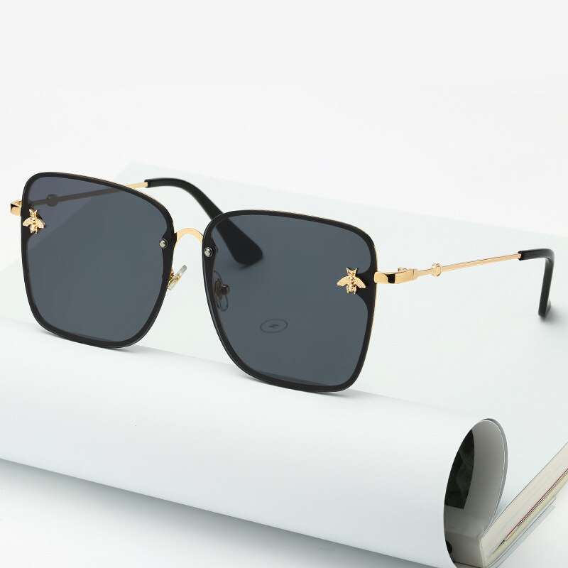 Европейские и американские дизайнеры, новинка, Ослепительная коробка в большой оправе, модные солнцезащитные очки с украшением в виде пчелы
