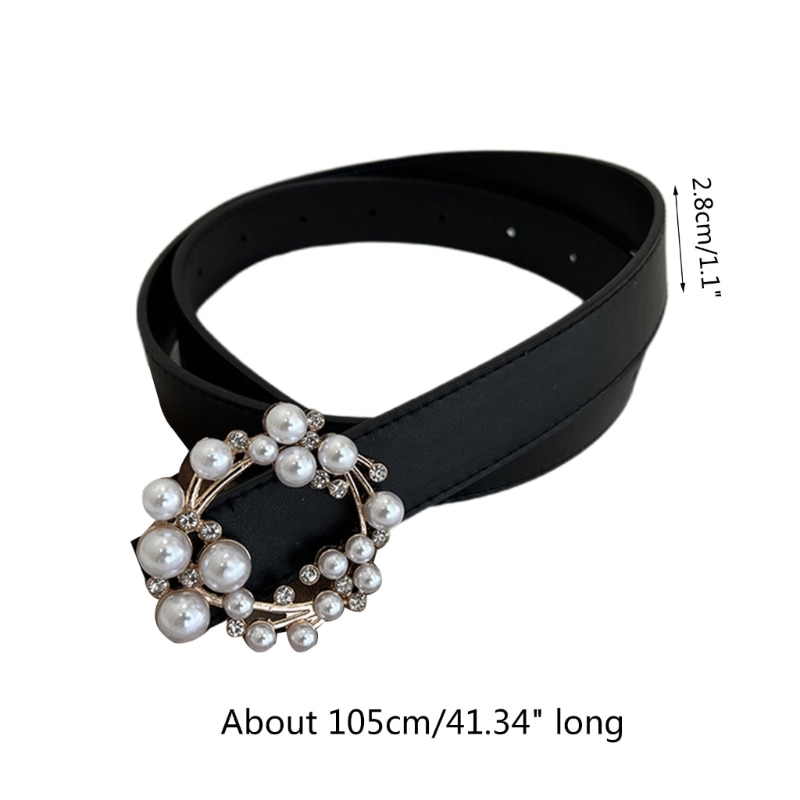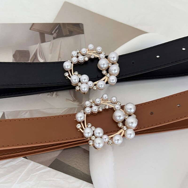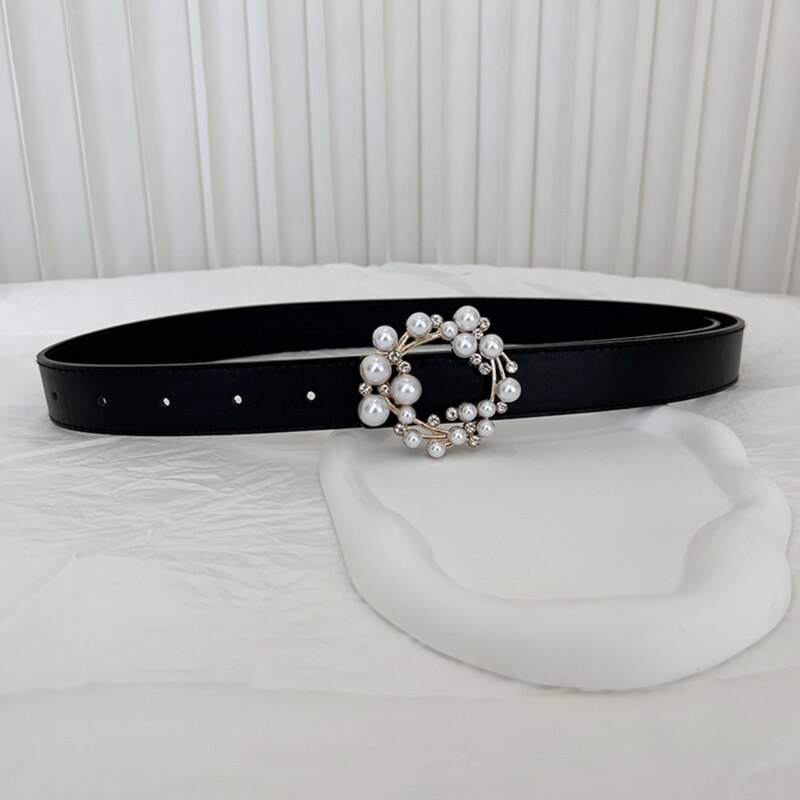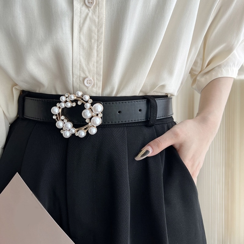 Ежедневный женский ремень с жемчужной круглой пряжкой с язычком поясной ремень для ночного клуба платья юбка пальто пояс