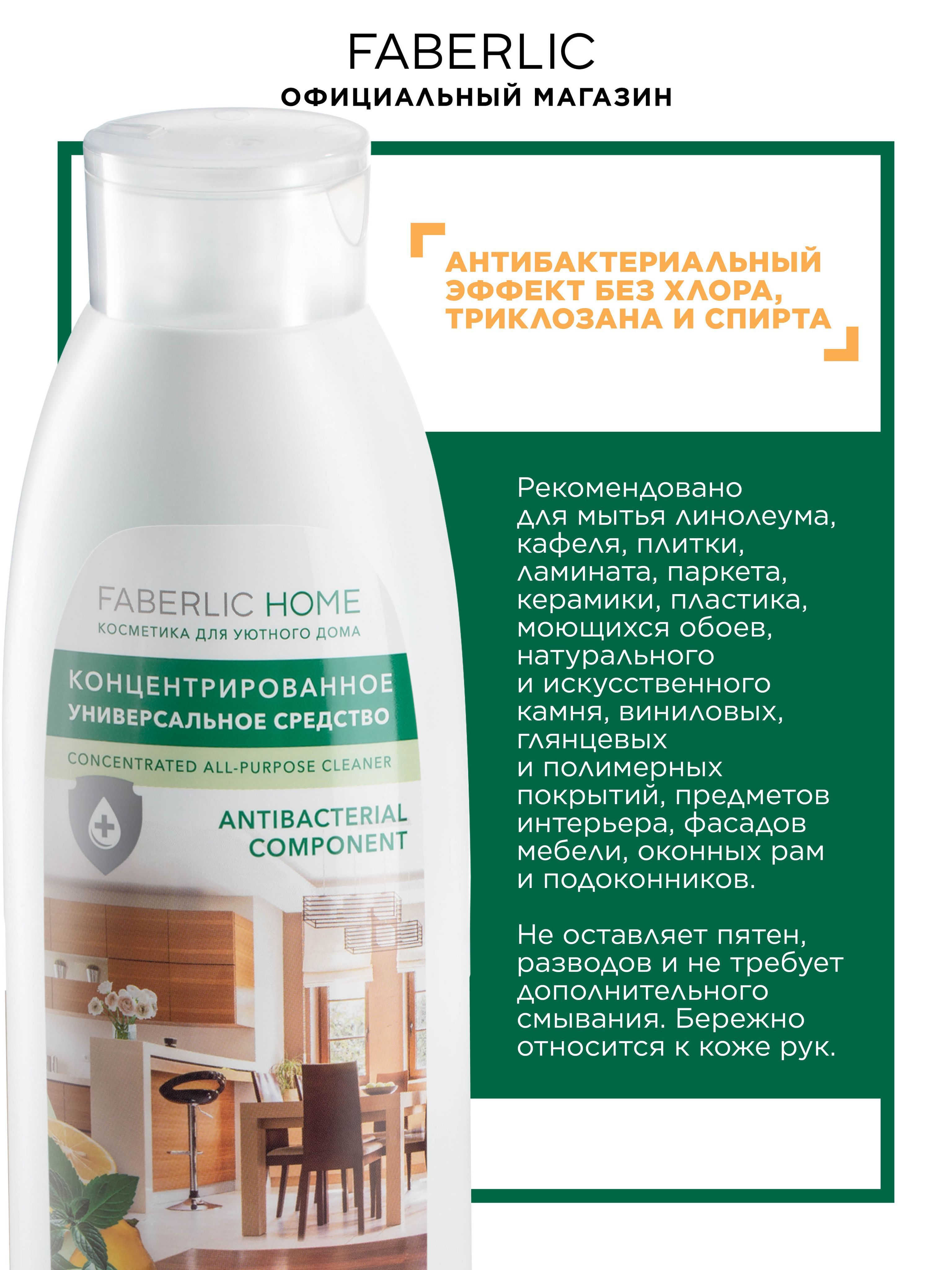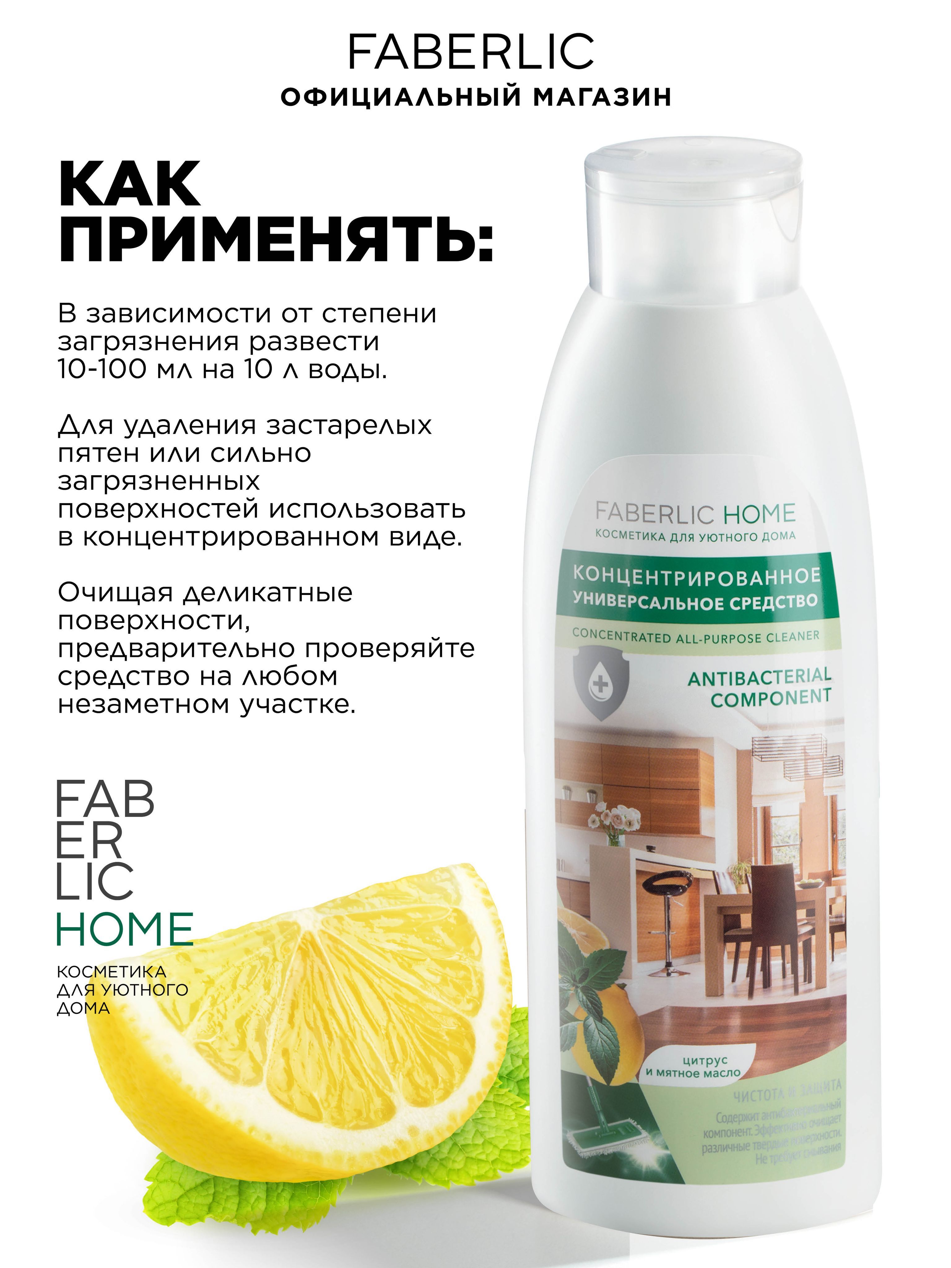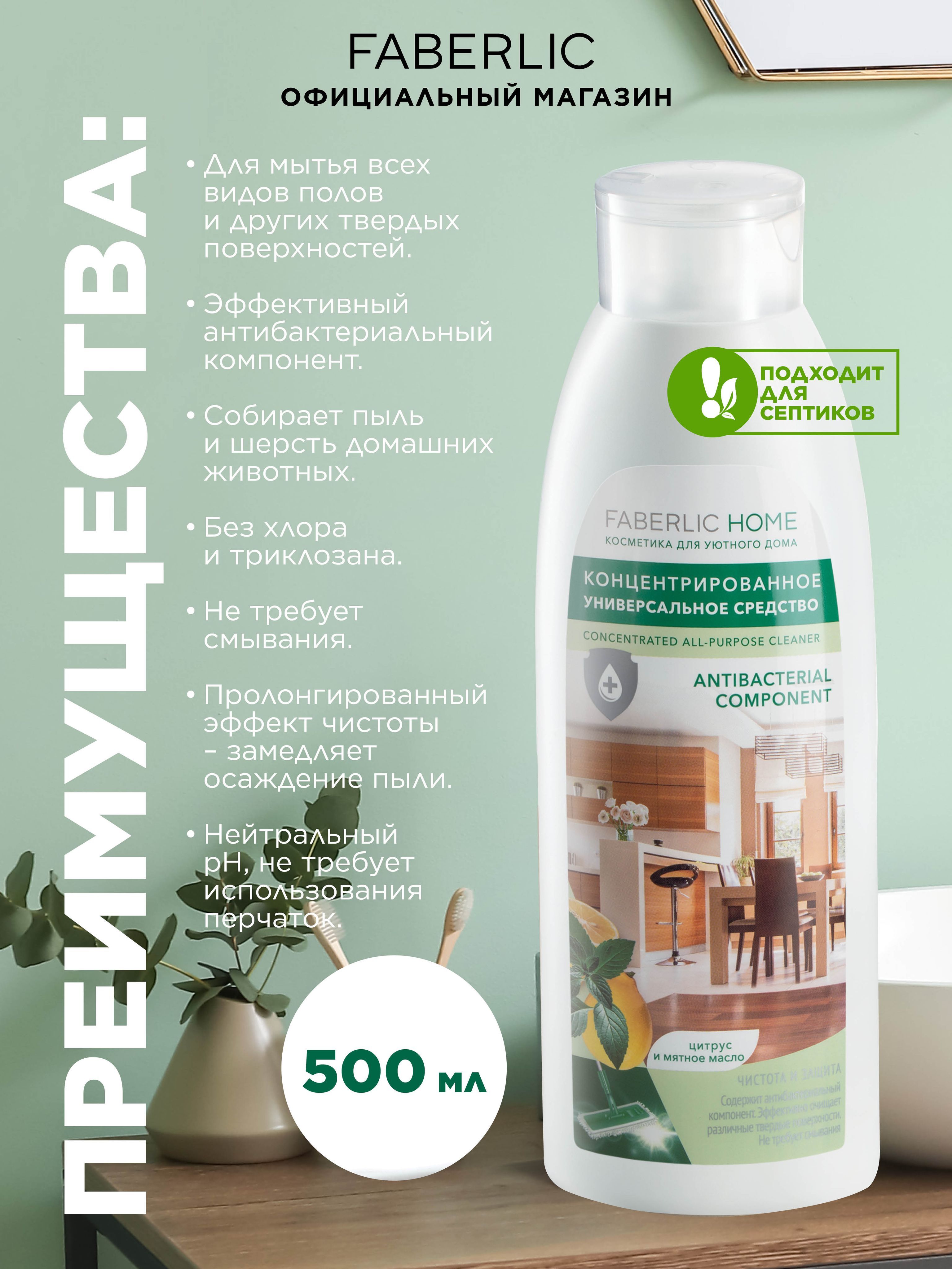 Faberlic Home Экологичное универсальное антибактериальное жидкое концентрированное моющее и чистящее средство для дома, без хлора, цитрус и мятное масло Фаберлик Чистота и защита, 500 мл