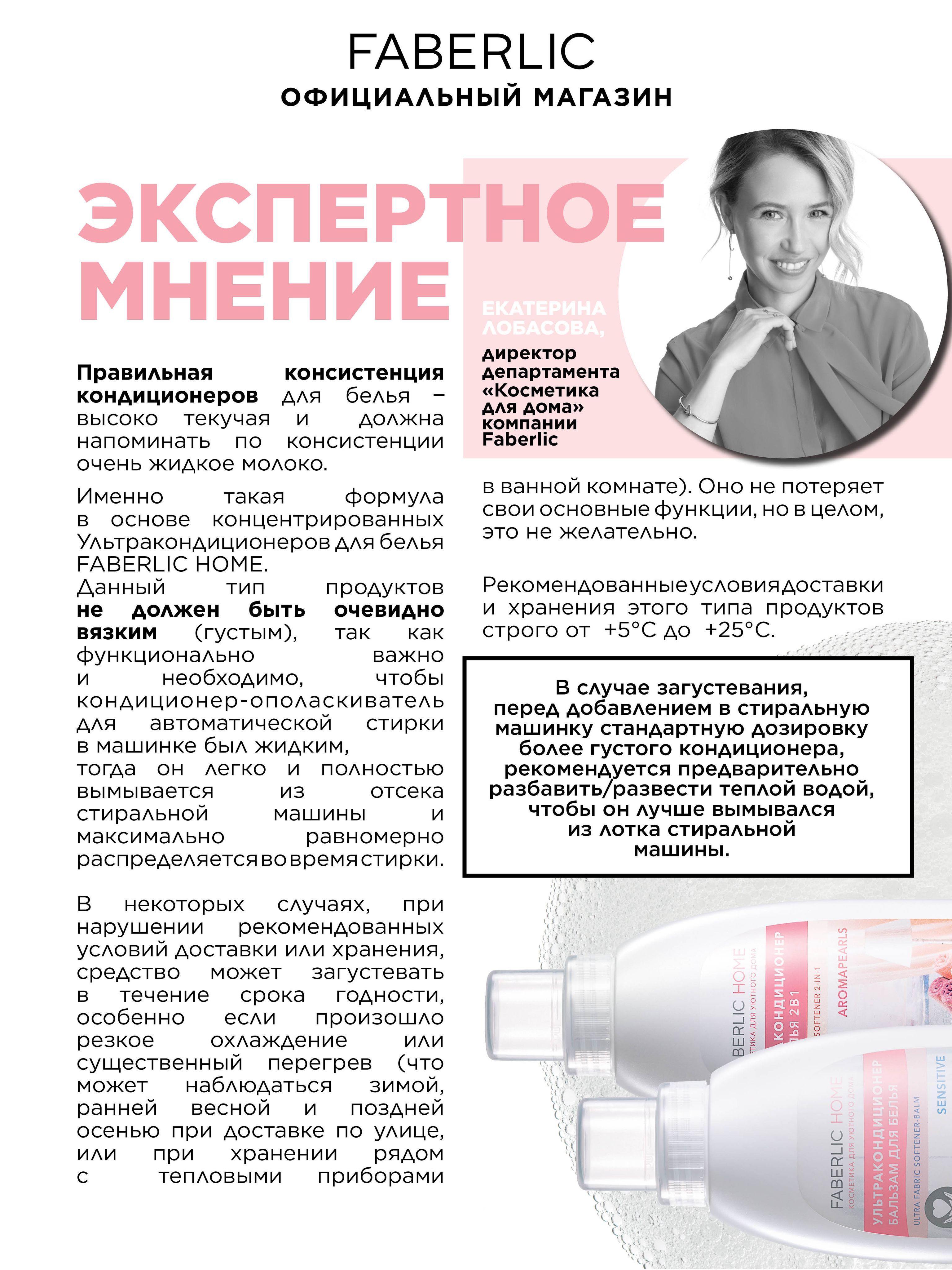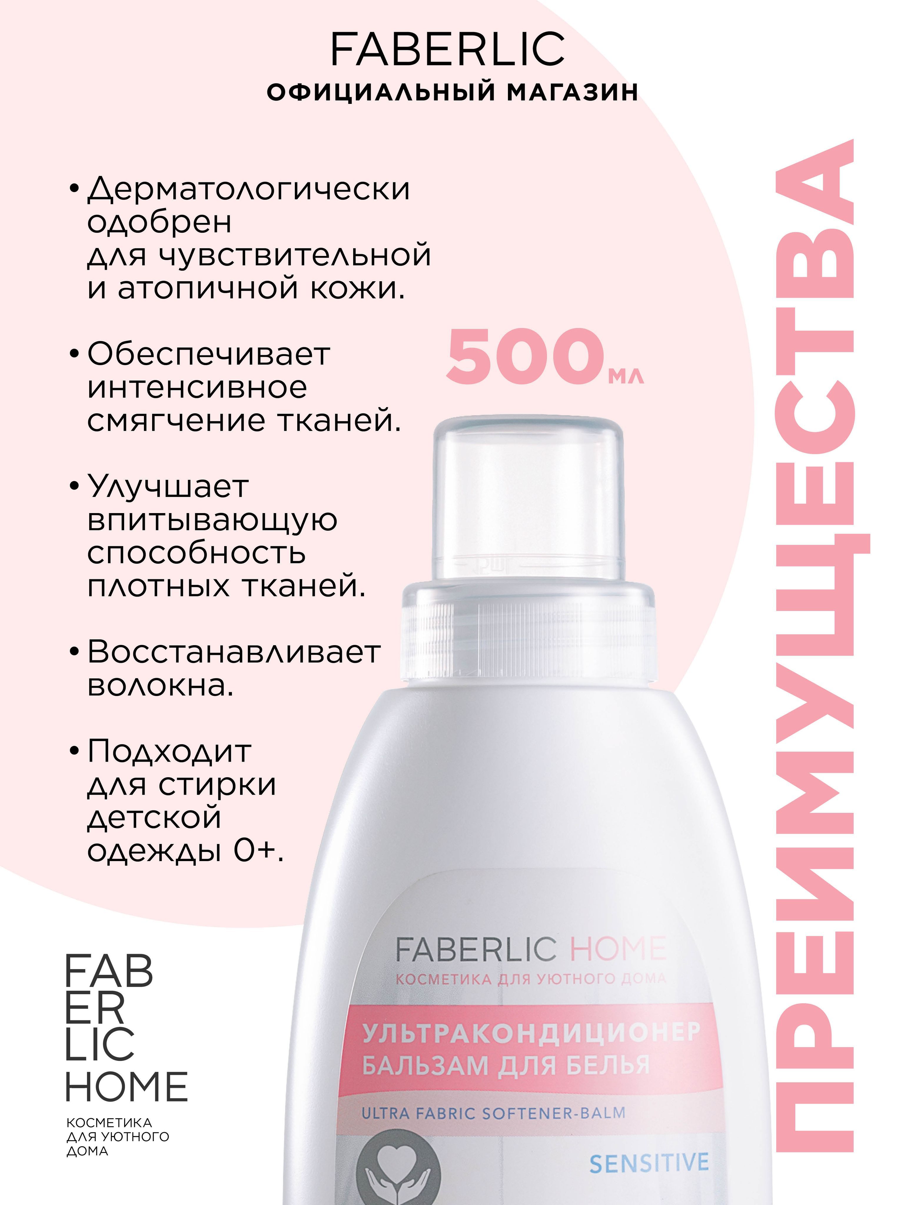 Faberlic Home Кондиционер бальзам для белья концентрат парфюмированный, концентрированный, суперконцентрат, ультракондиционер унивесальный детский и взрослый, Фаберлик, Sensitive 500 мл., 30 стирок