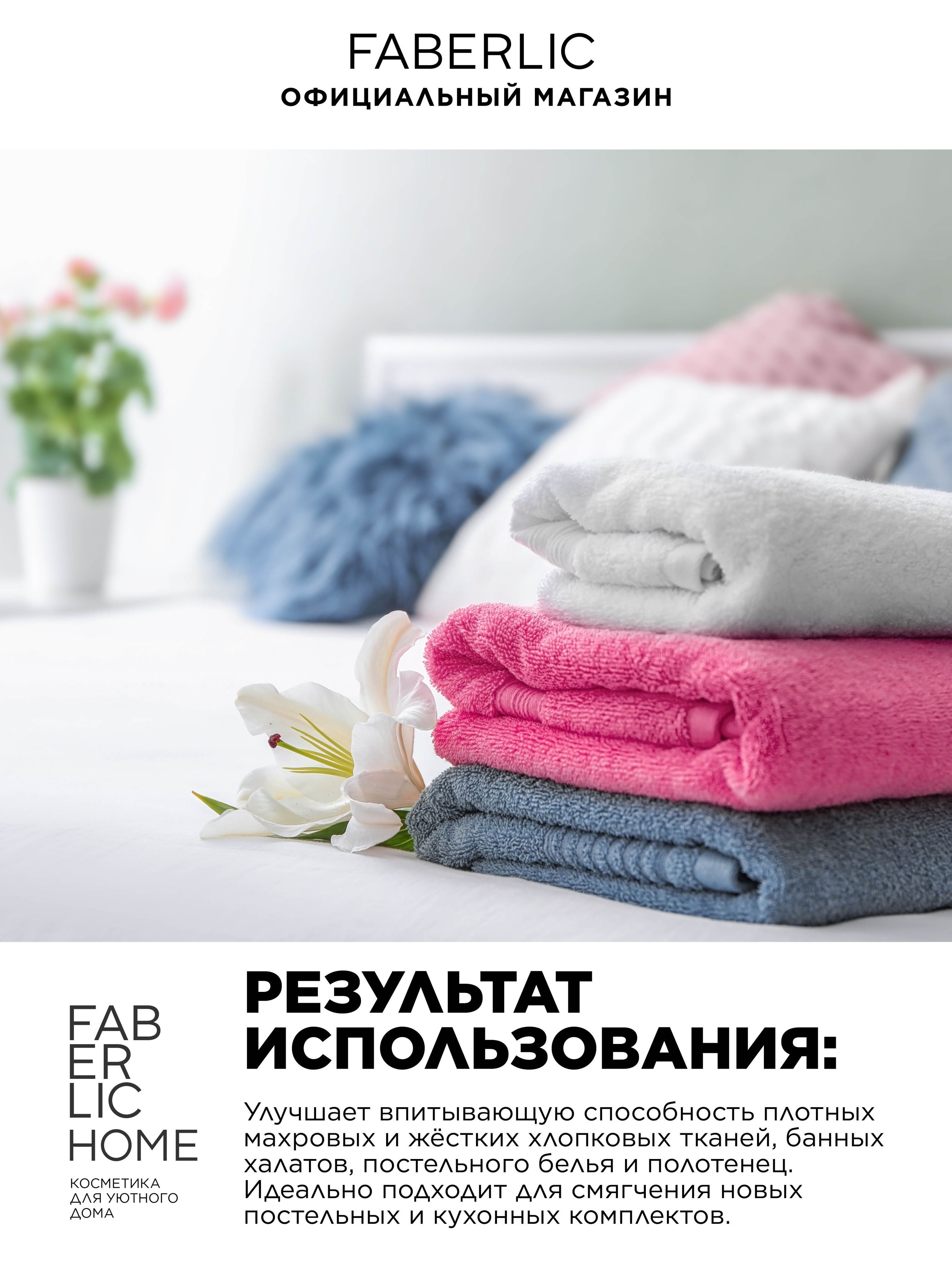 Кондиционер улучшает впитывающую способность плотных махровых и жёстких хлопковых тканей, банных халатов, постельного белья и полотенец. Идеально подходит для смягчения новых постельных и кухонных комплектов.