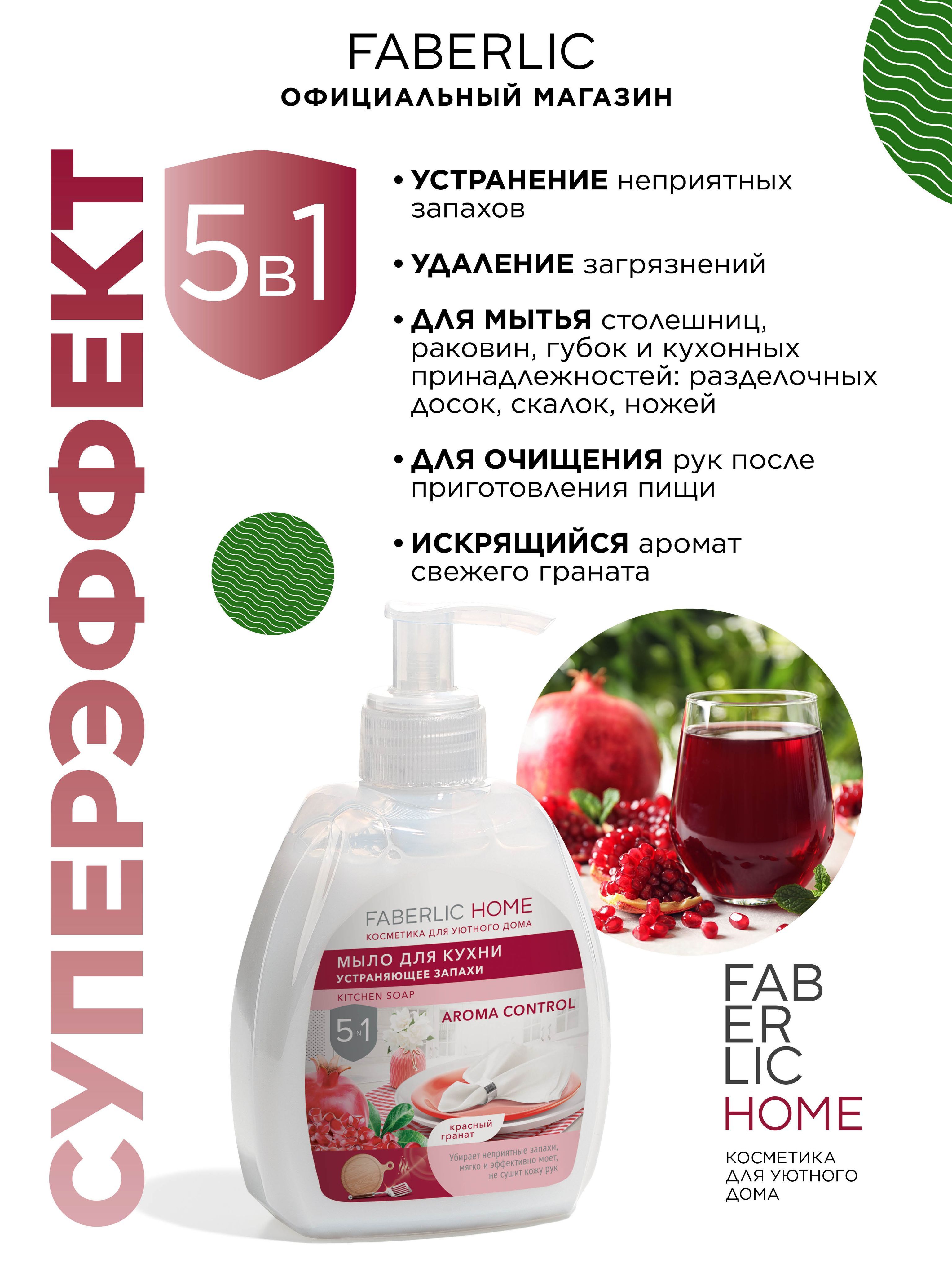 Мыло для кухни, устраняющее запахи, 5 в 1, красный гранат, FABERLIC HOME, 300 мл - 1 шт.