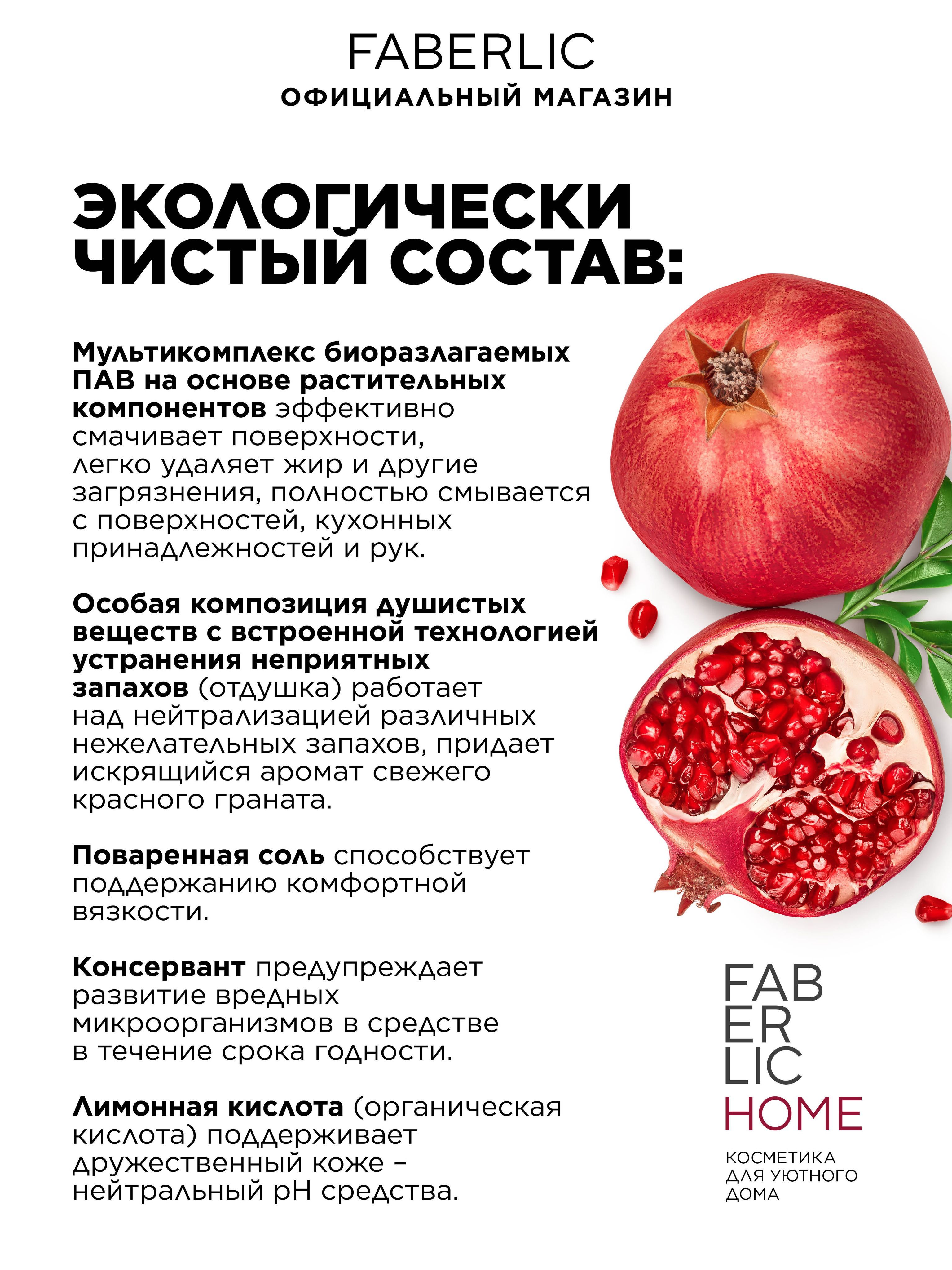Faberlic Home Жидкое мыло для кухни устраняющее запахи, для мытья посуды, Красный Гранат, Фаберлик, 300 мл