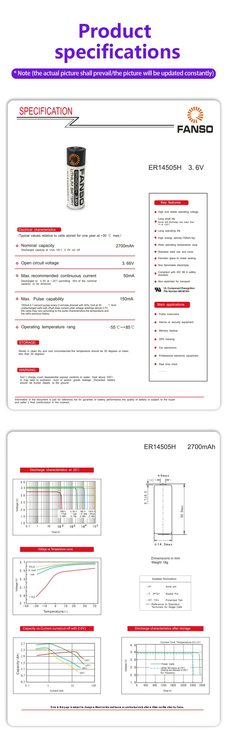 FANSO ER14505H одноразовая литиевая батарея 3,6 В интеллектуальный счетчик воды и электроэнергии ЧПУ сервокодер расходомер